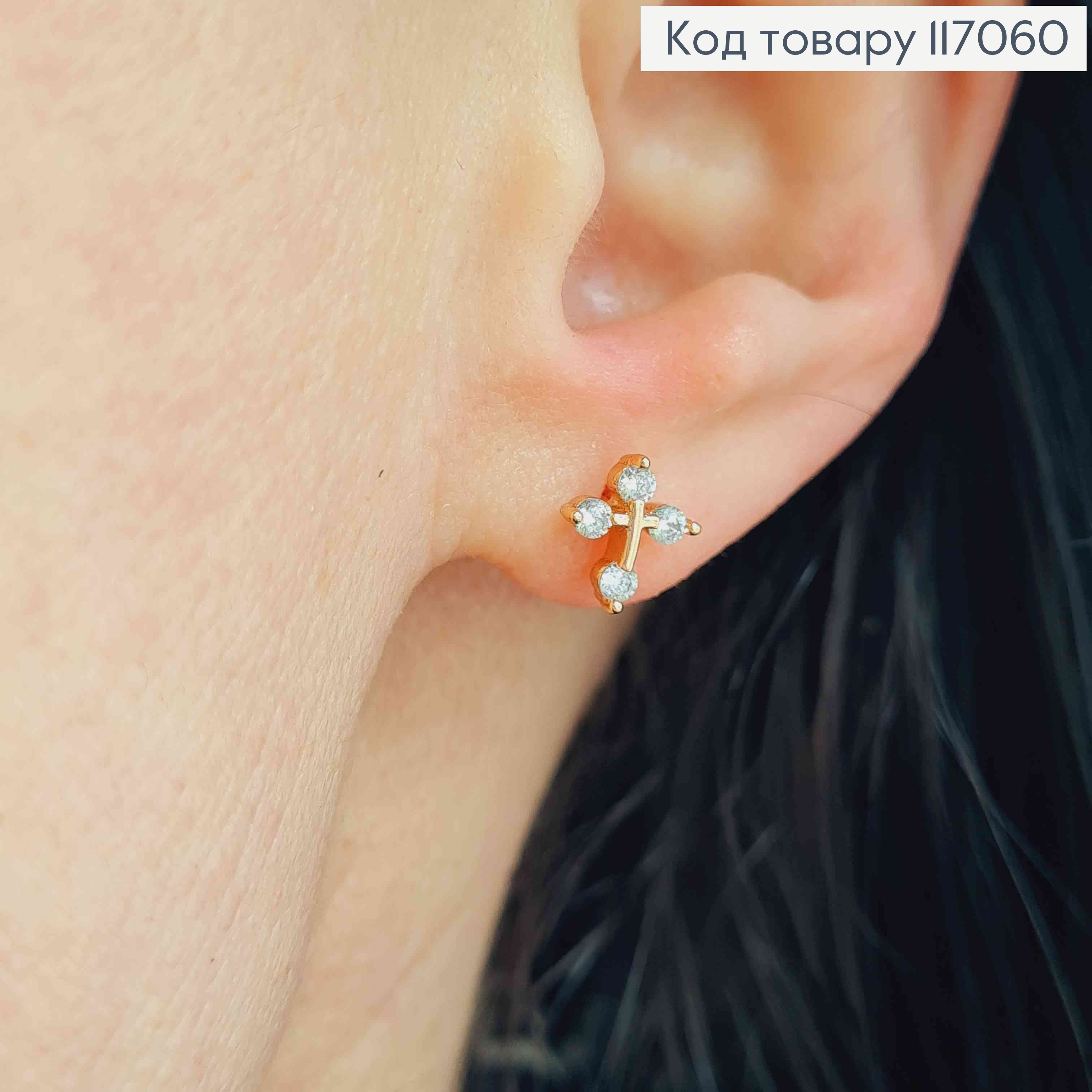 Серьги гвоздики, маленькие крестики с камешками, 0,8см, Xuping 18K