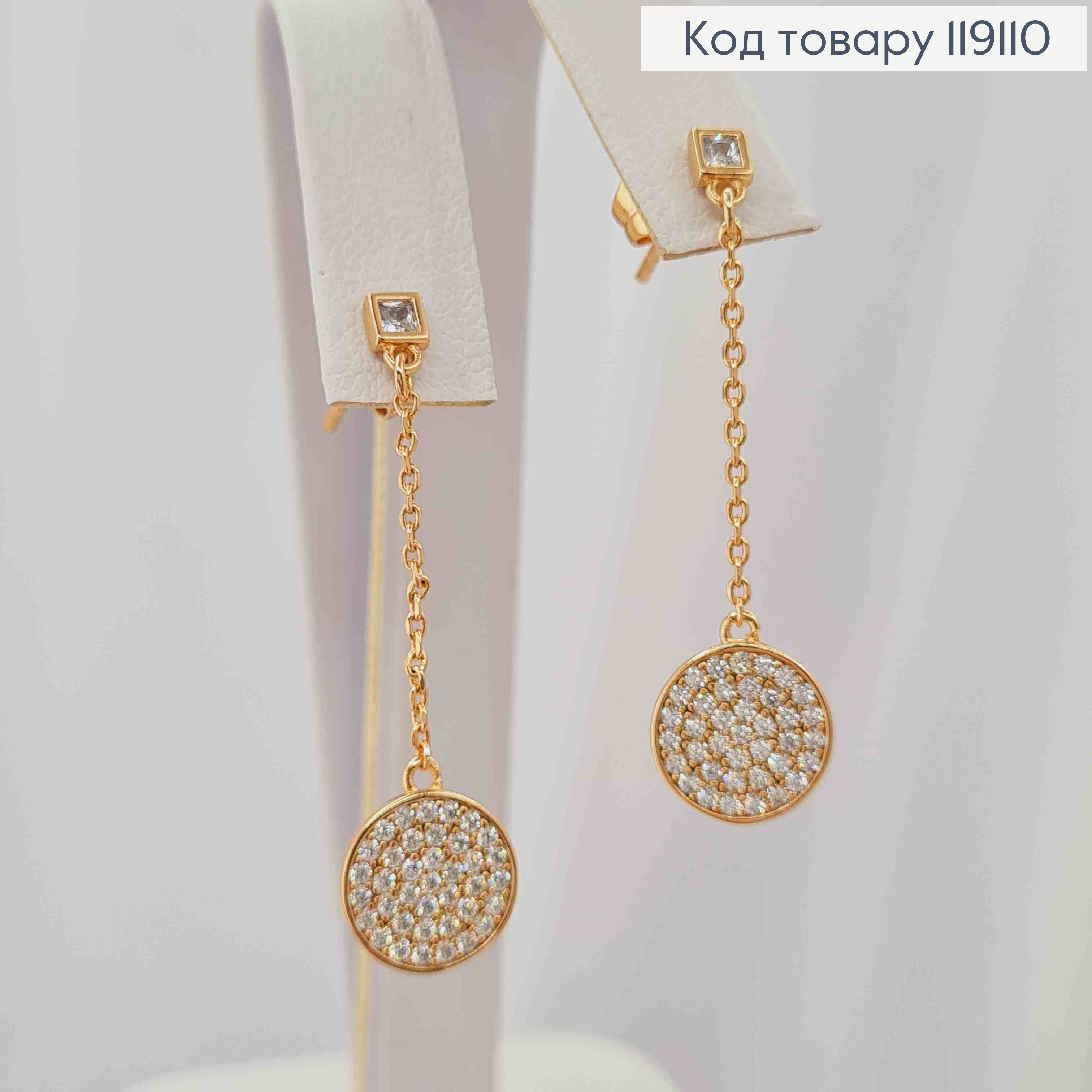 Серьги гвоздики подвесной Круг в камешках (9мм) на цепочке, длина 3,5см, XUPING 18K