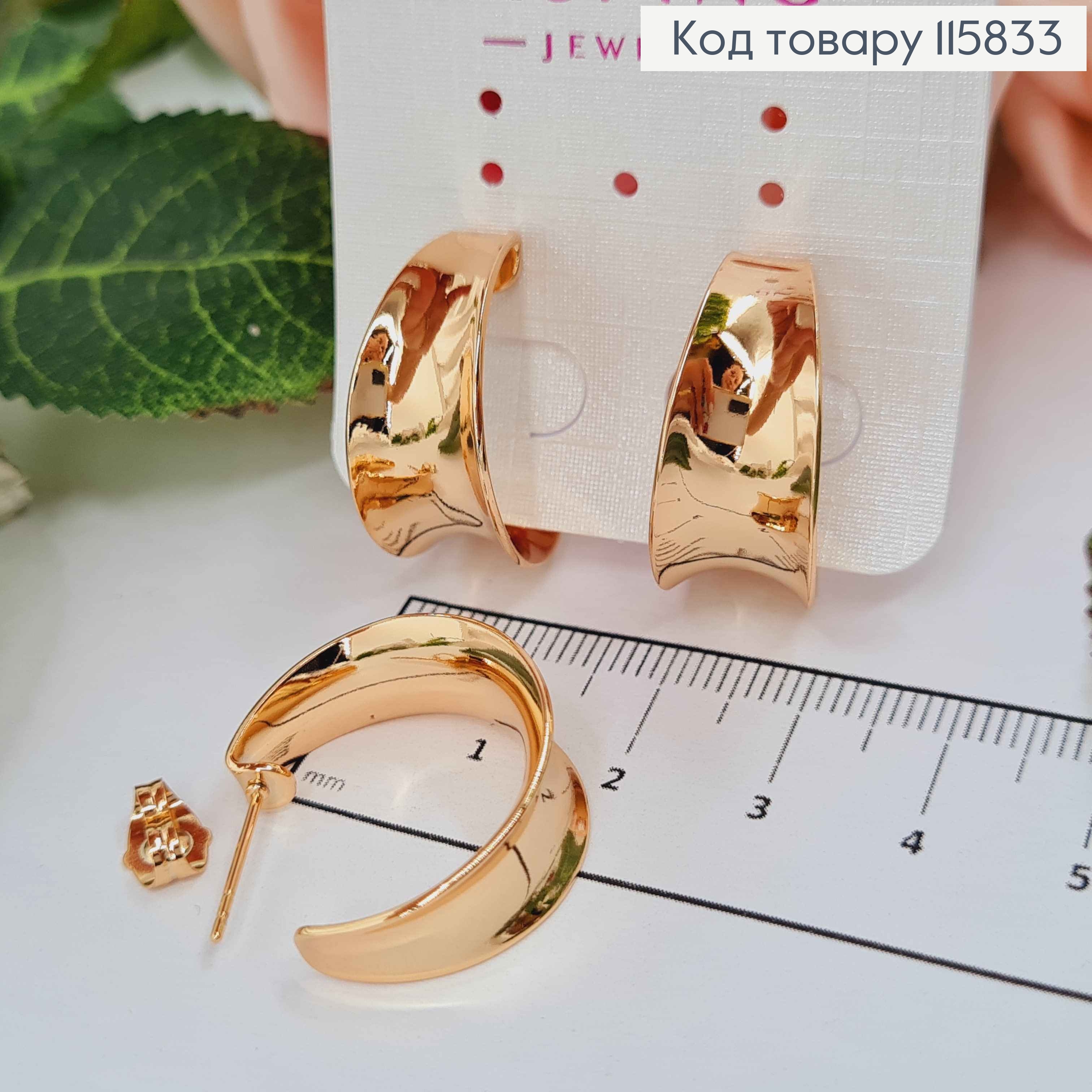 Серьги гвоздики, Полумесяц, изогнутые, диам. 2см, Xuping 18K