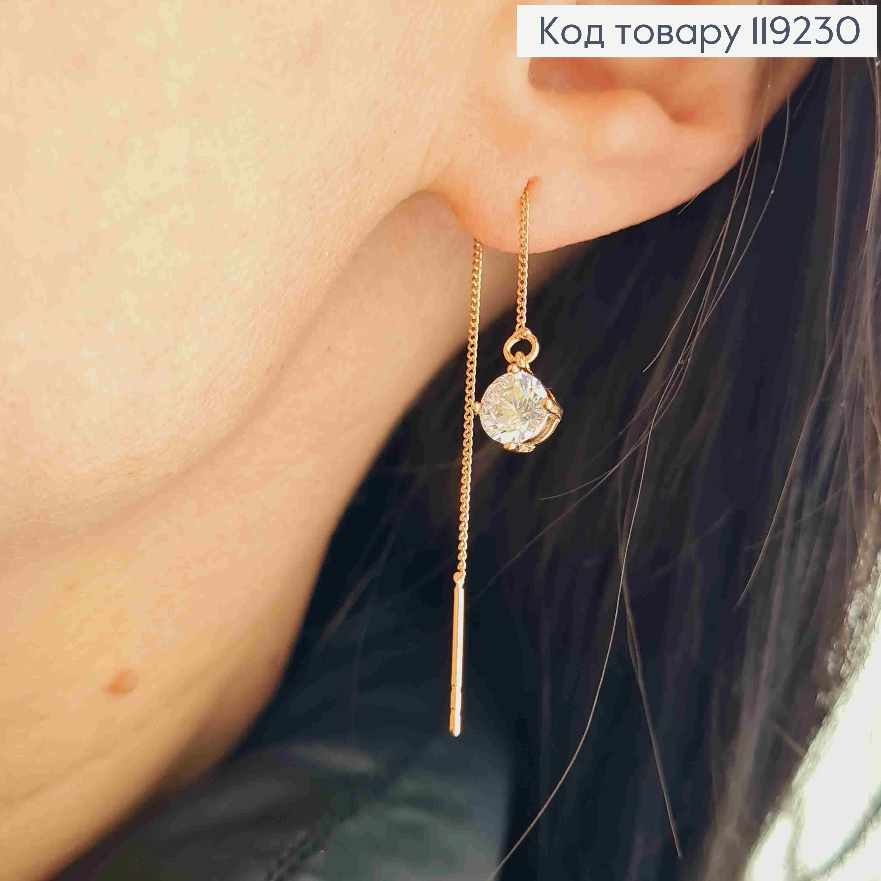 Серьги гвоздики-протяжки Блестящий камень (6мм) на цепочке, длина 6,8см, Xuping 18K