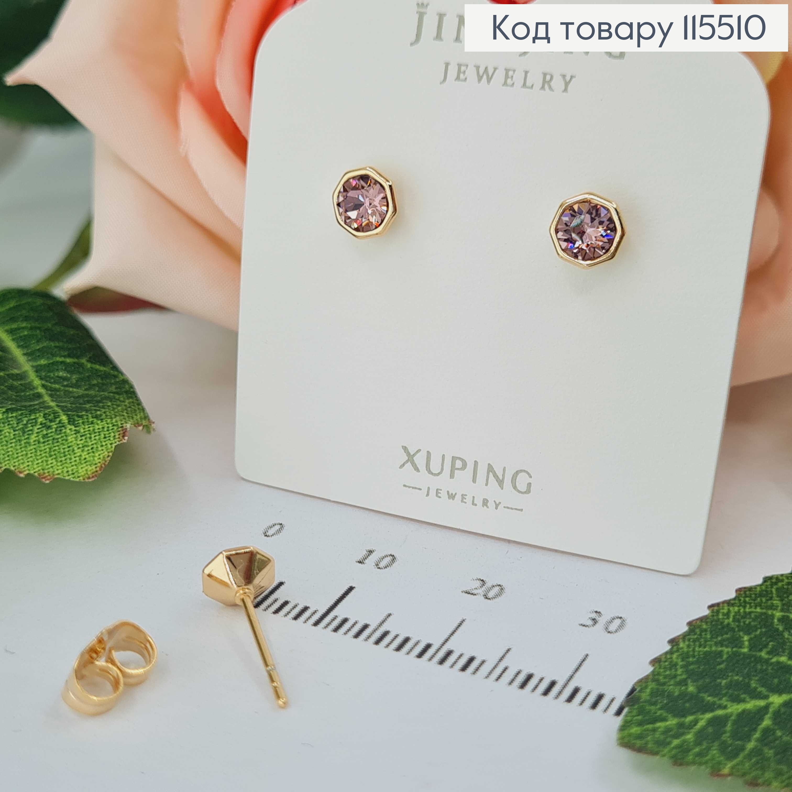 Серьги гвоздики, розовый камень в оправе, 0,5см. Xuping 18K