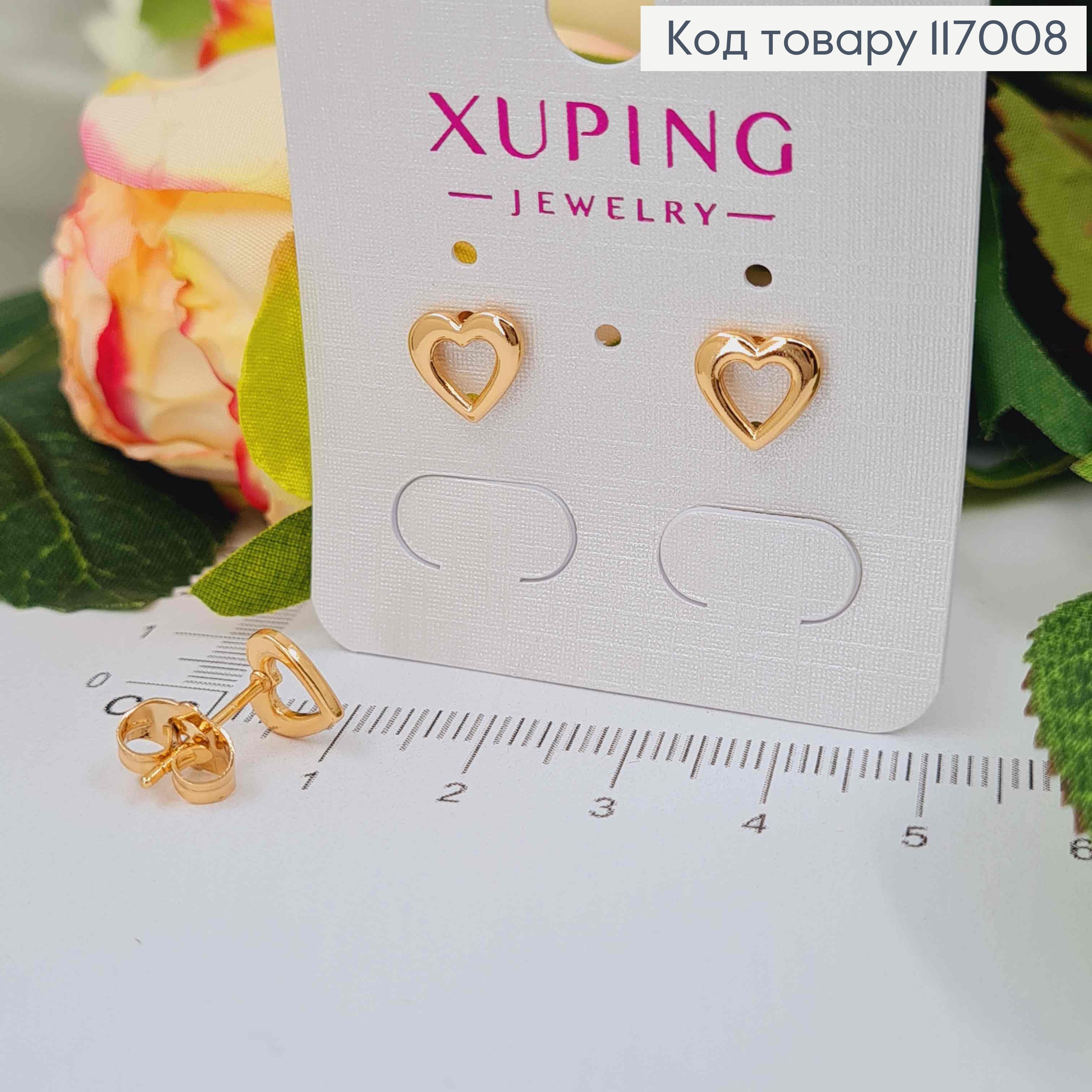 Серьги гвоздики, Сердечки тоненькие, 0,8см, Xuping 18K
