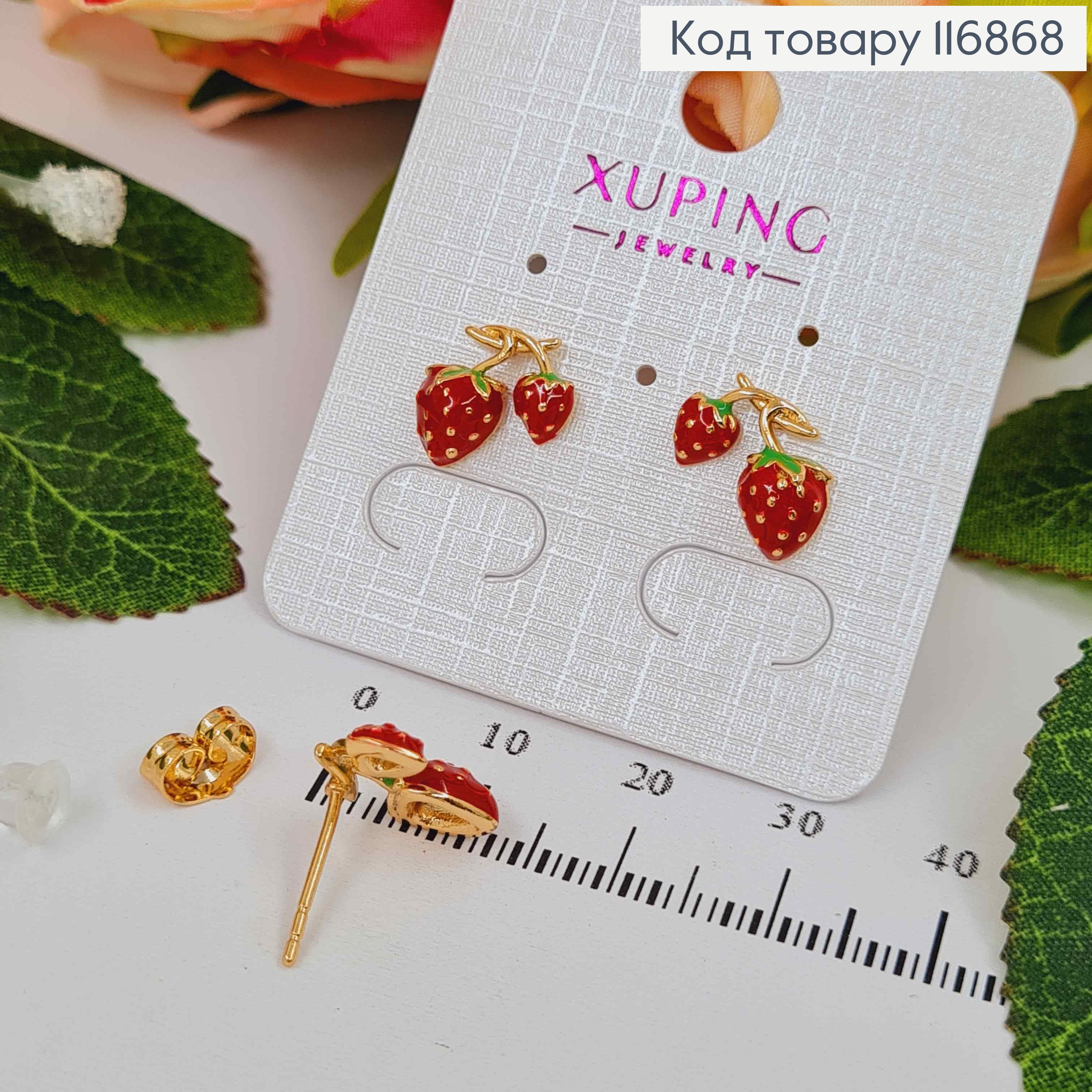 Серьги гвоздики, "Земляника", 1см, Xuping 18К