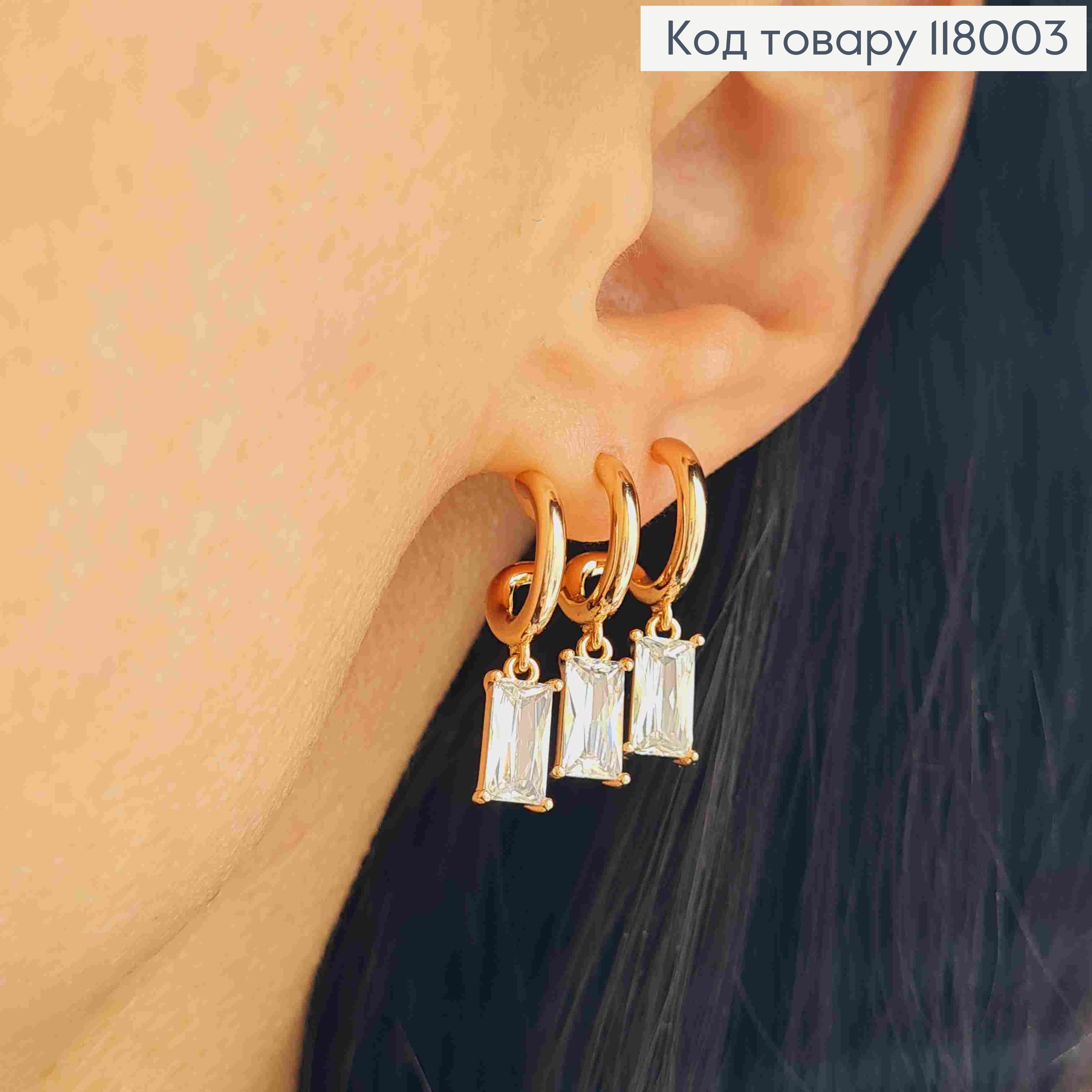 Серьги кольца "Прямоугольные" украшены Блестящими камешками, длиной 2,4см, застежка заколка, Xuping 18К 110199 фото