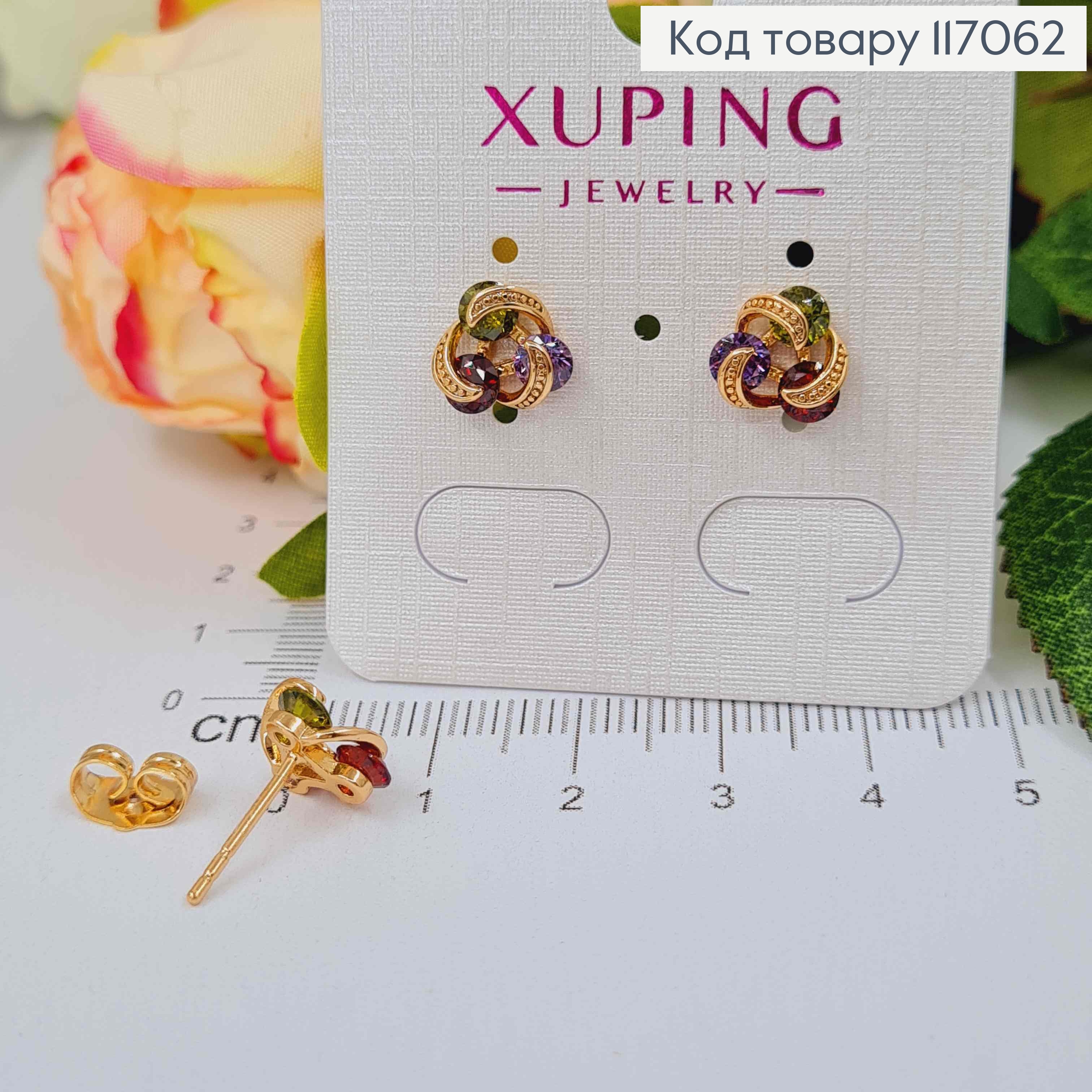 Серьги гвоздики, "Узелки" с цветными темными камешками, 1см, Xuping 18K