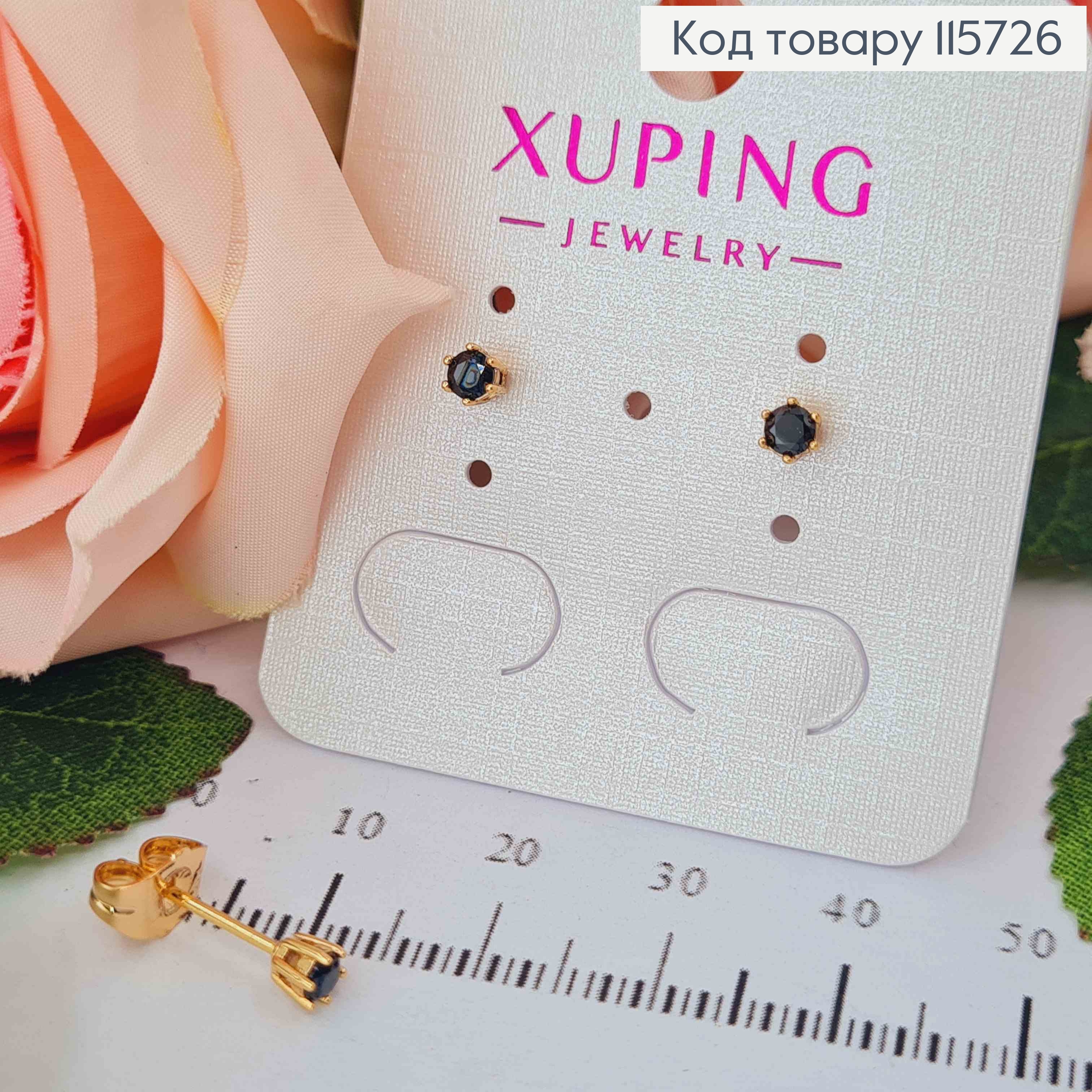 Серьги гвоздики с черным камешком 3мм, Xuping 18K
