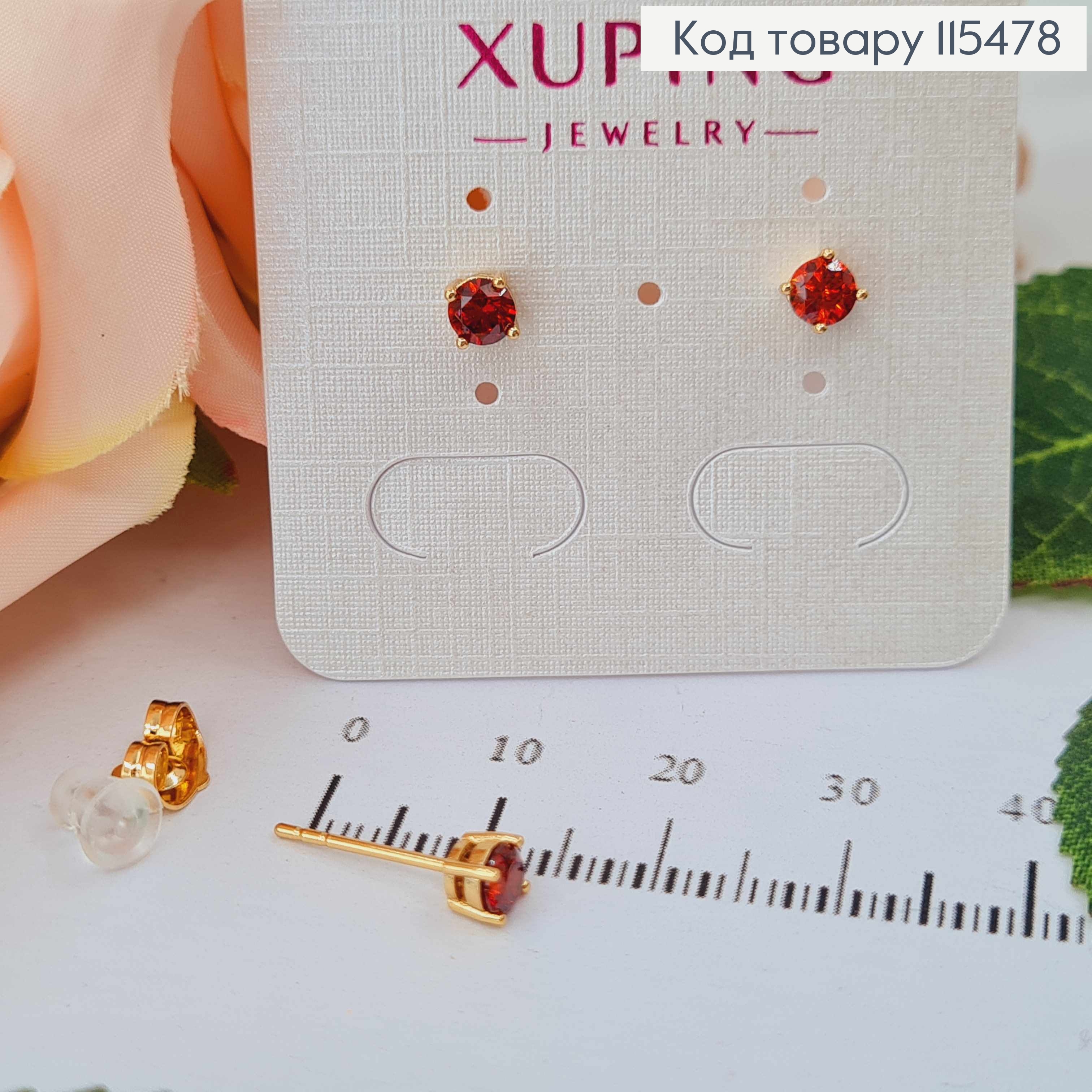 Серьги гвоздики, с камешком бордового цвета 0,5см. Xuping 18K
