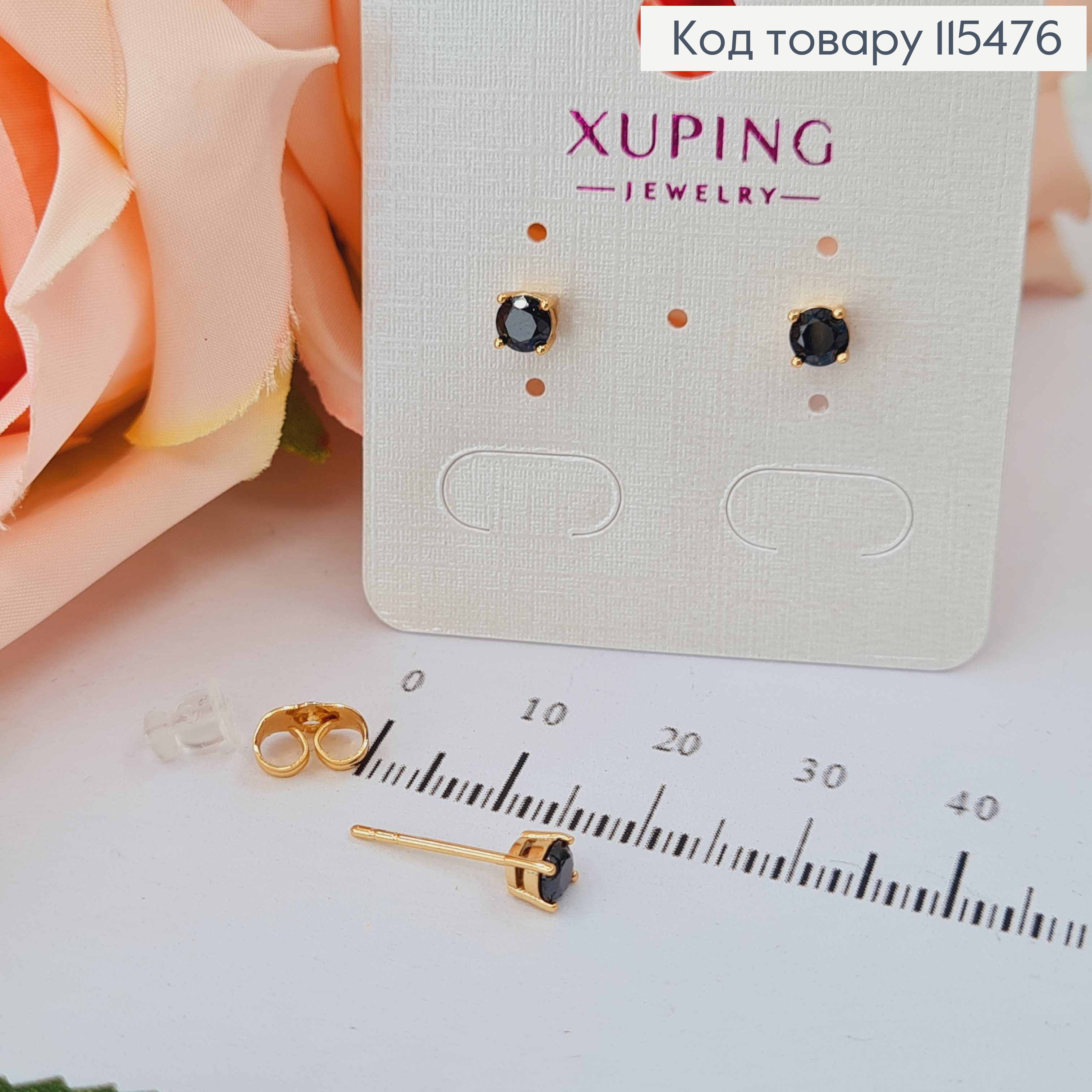 Серьги гвоздики, с камешком черного цвета 0,5см. Xuping 18K