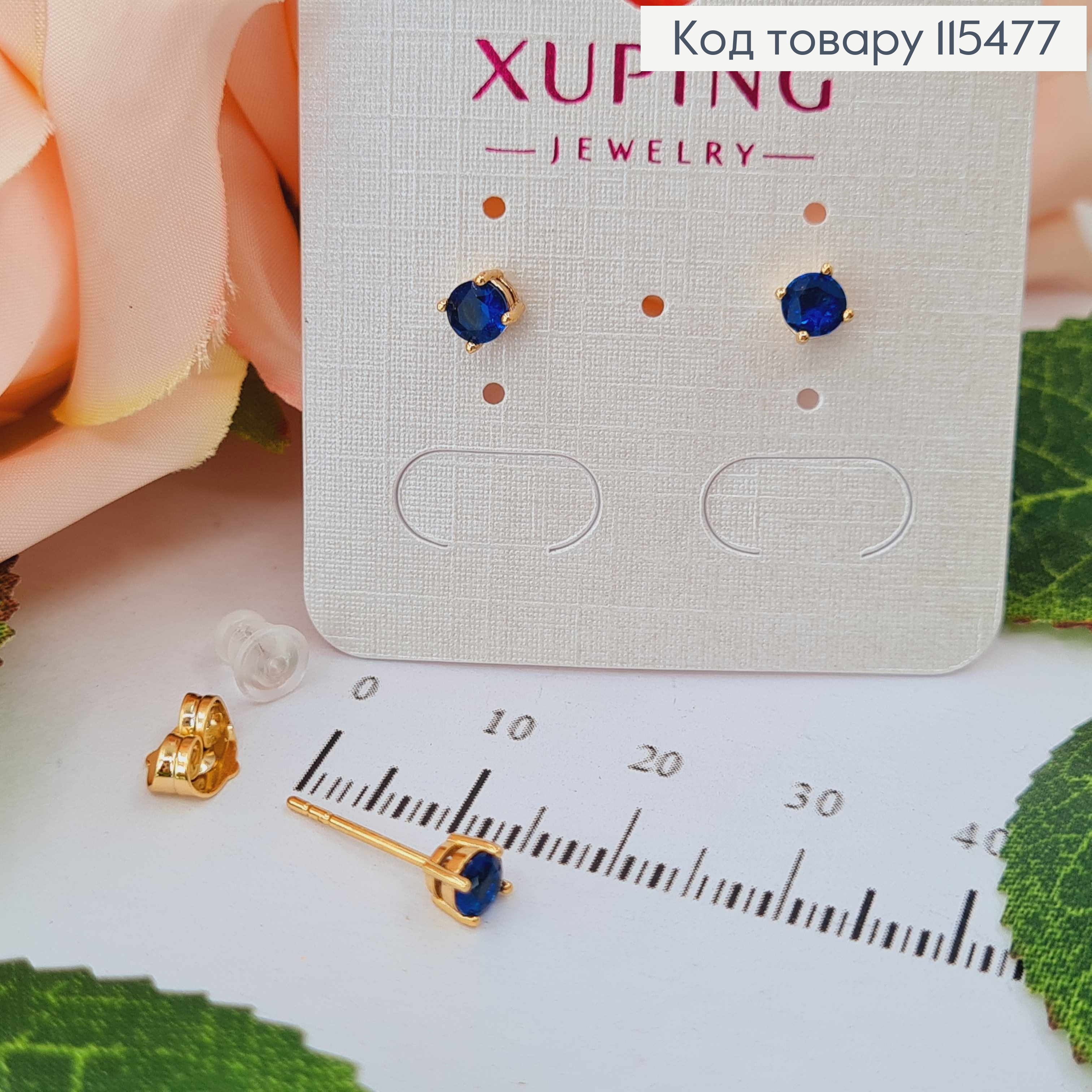 Серьги гвоздики, с камешком синего цвета 0,5см. Xuping 18K