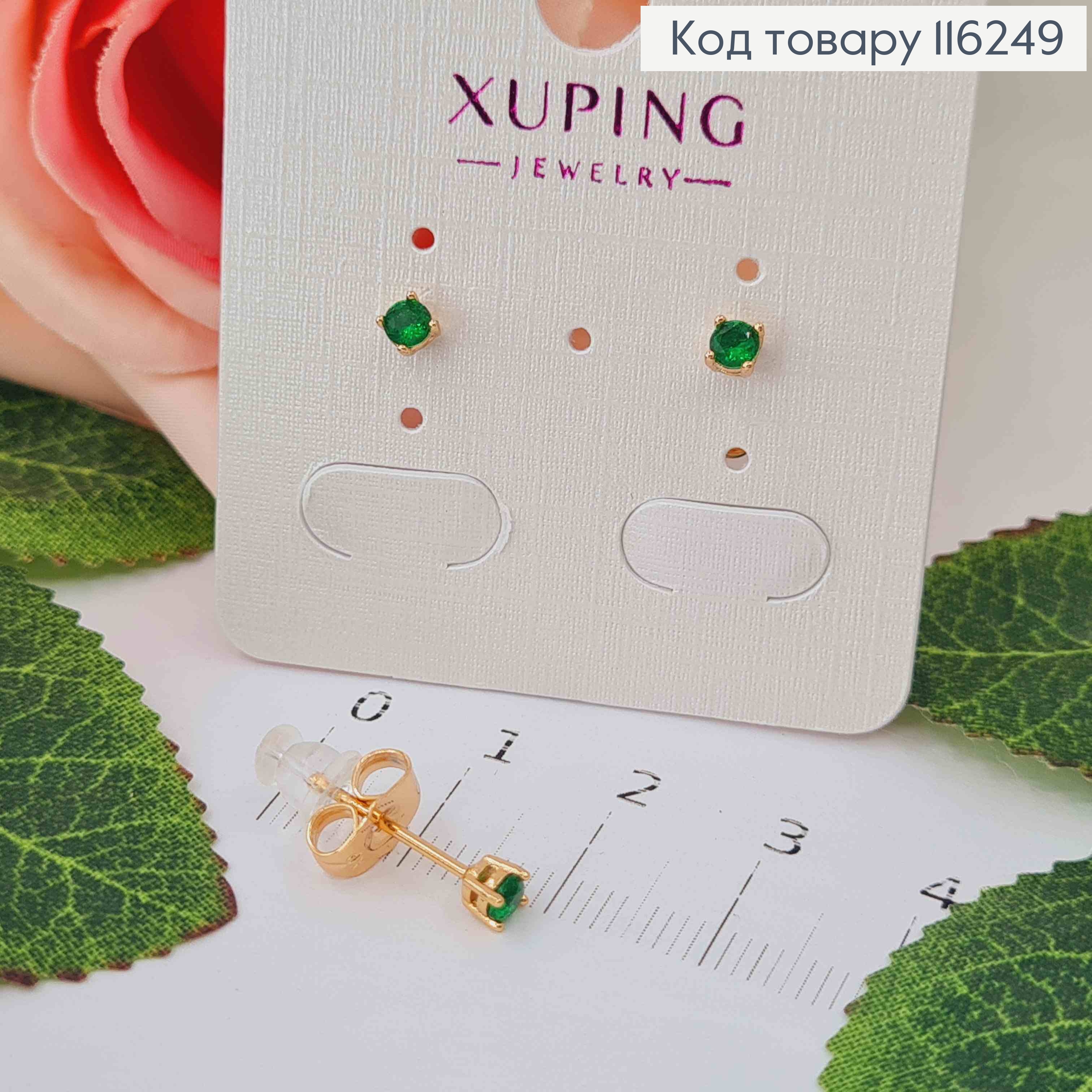 Серьги гвоздики, с камешком зеленого цвета 0,5см. Xuping 18K