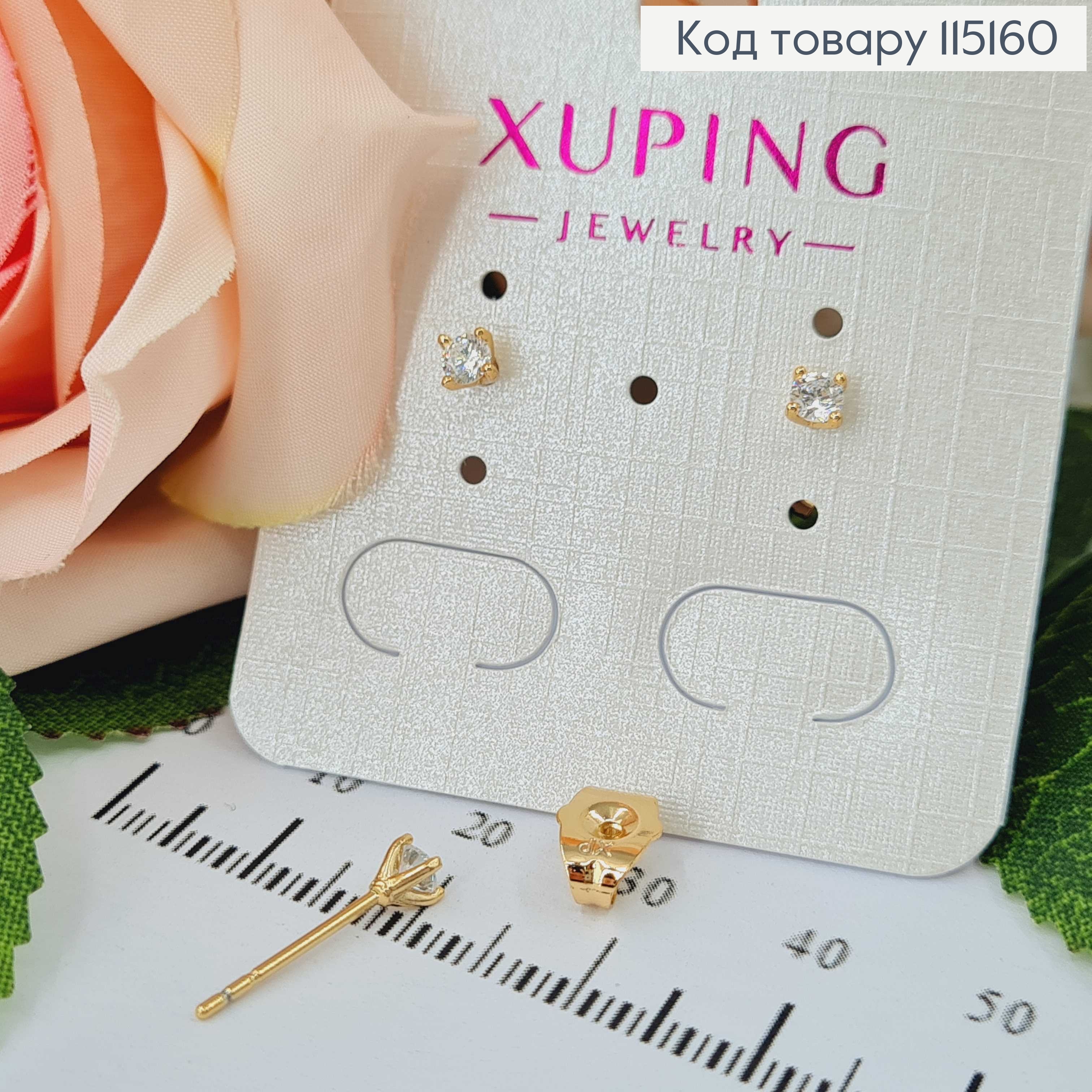 Серьги гвоздики, с камешком 3мм, Xuping 18K