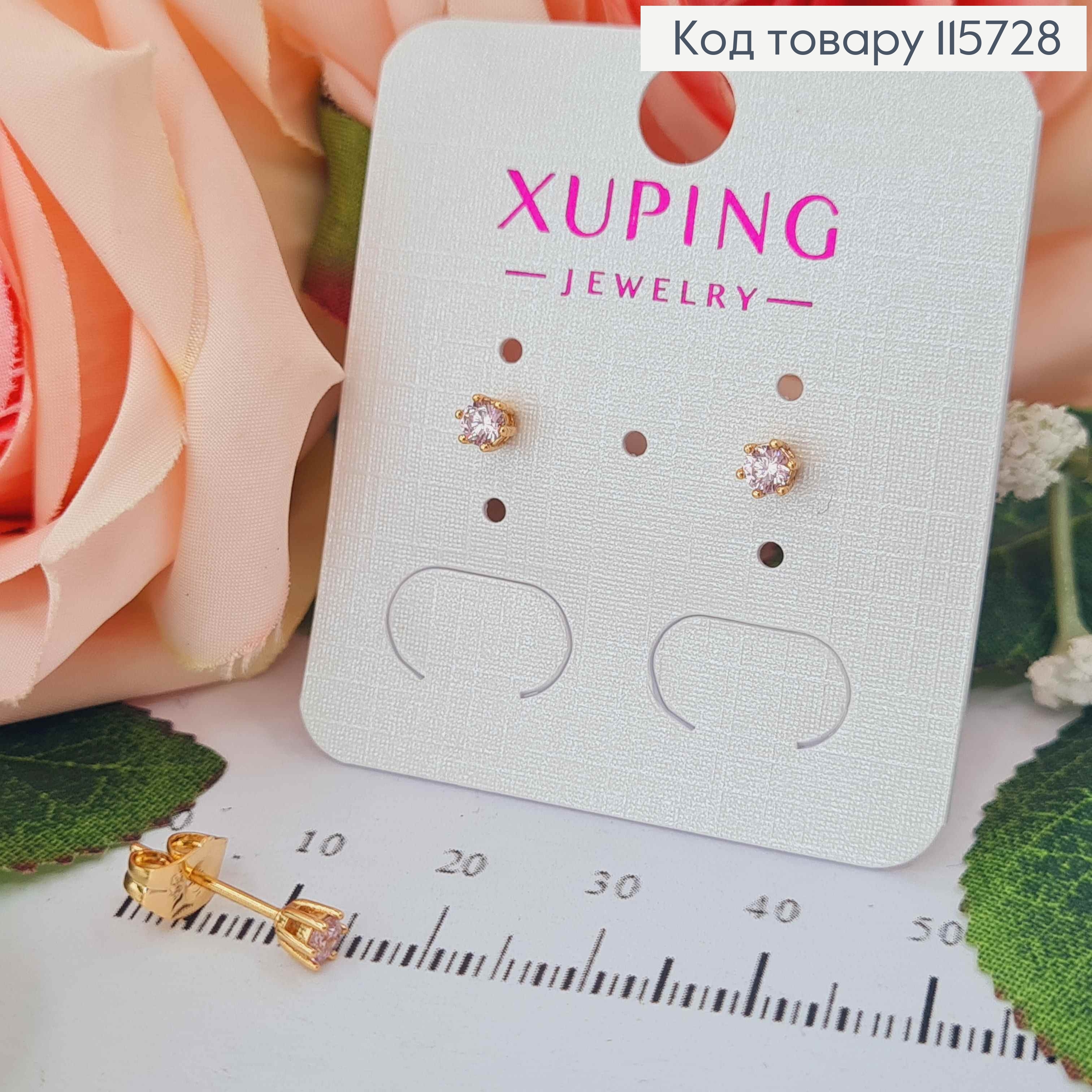 Серьги гвоздики с лиловым камешком 3мм, Xuping 18K