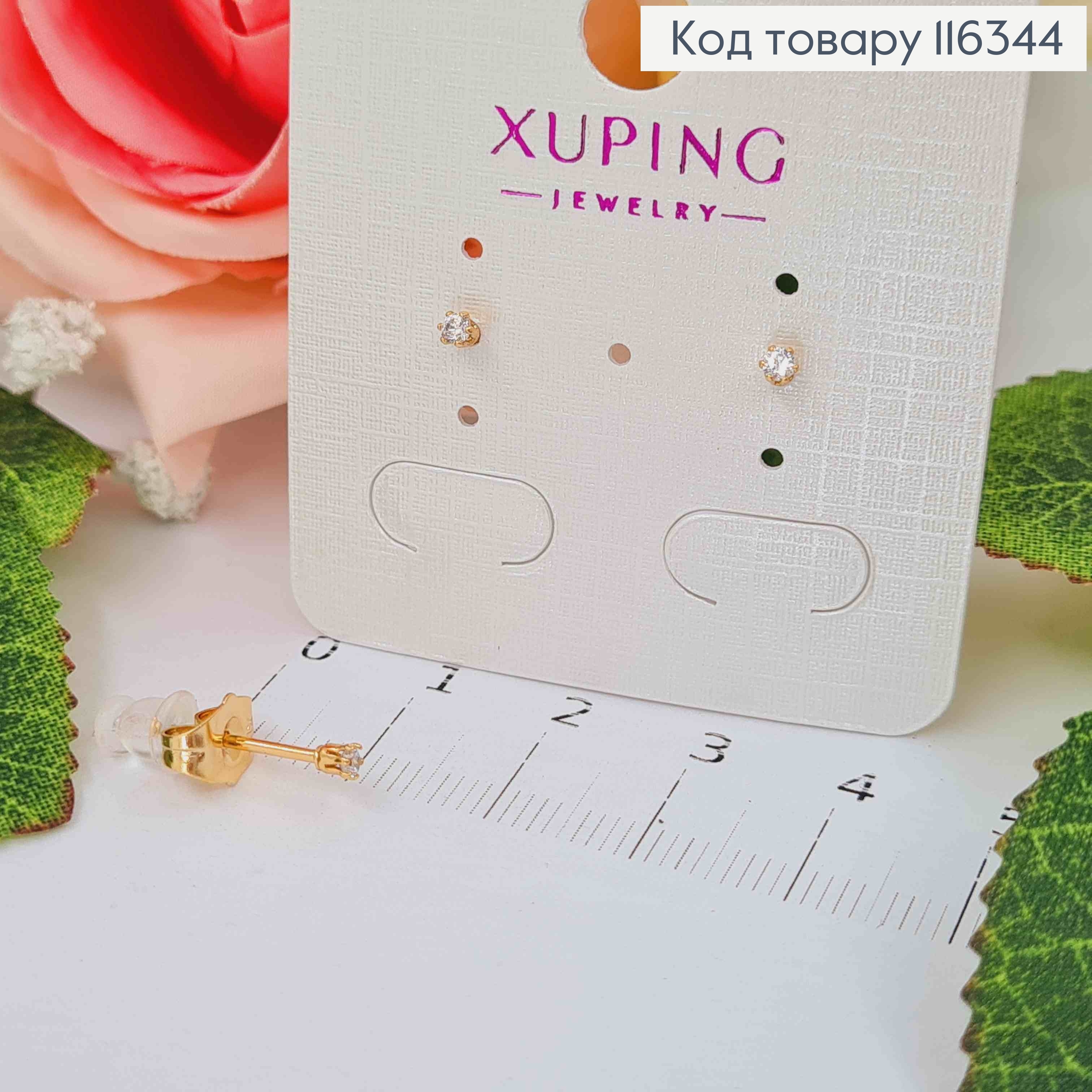 Серьги гвоздики, с маленьким белым камешком 2мм, Xuping 18K