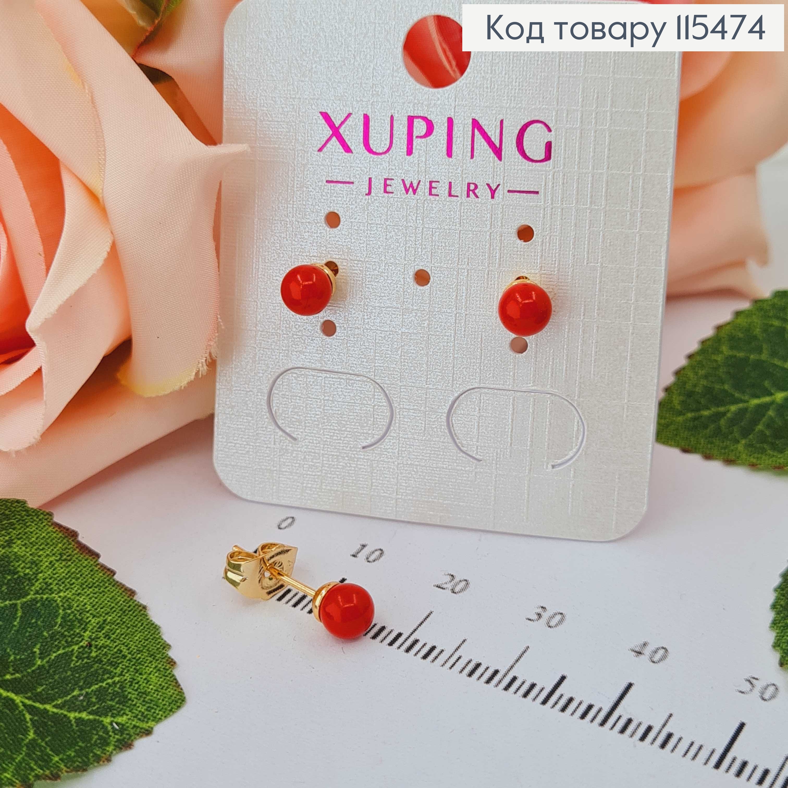 Серьги гвоздики, с жемчужиной красного цвета 0,5см, Xuping 18K