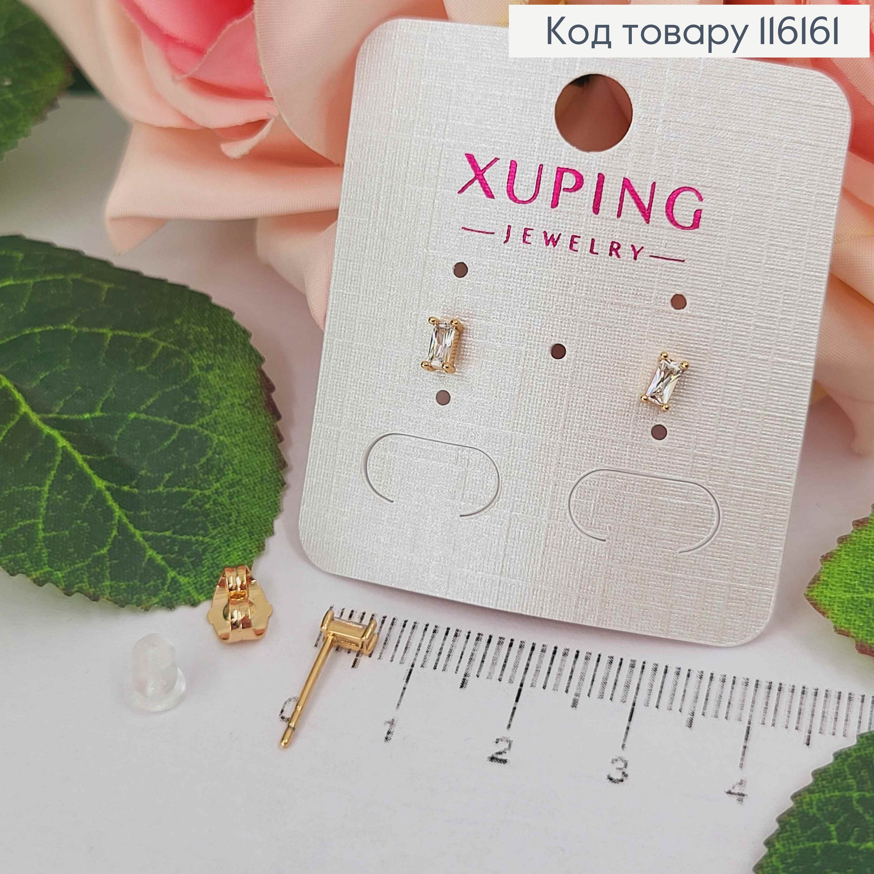 Серьги гвоздики, с прямоугольным камешком 4мм, Xuping 18K