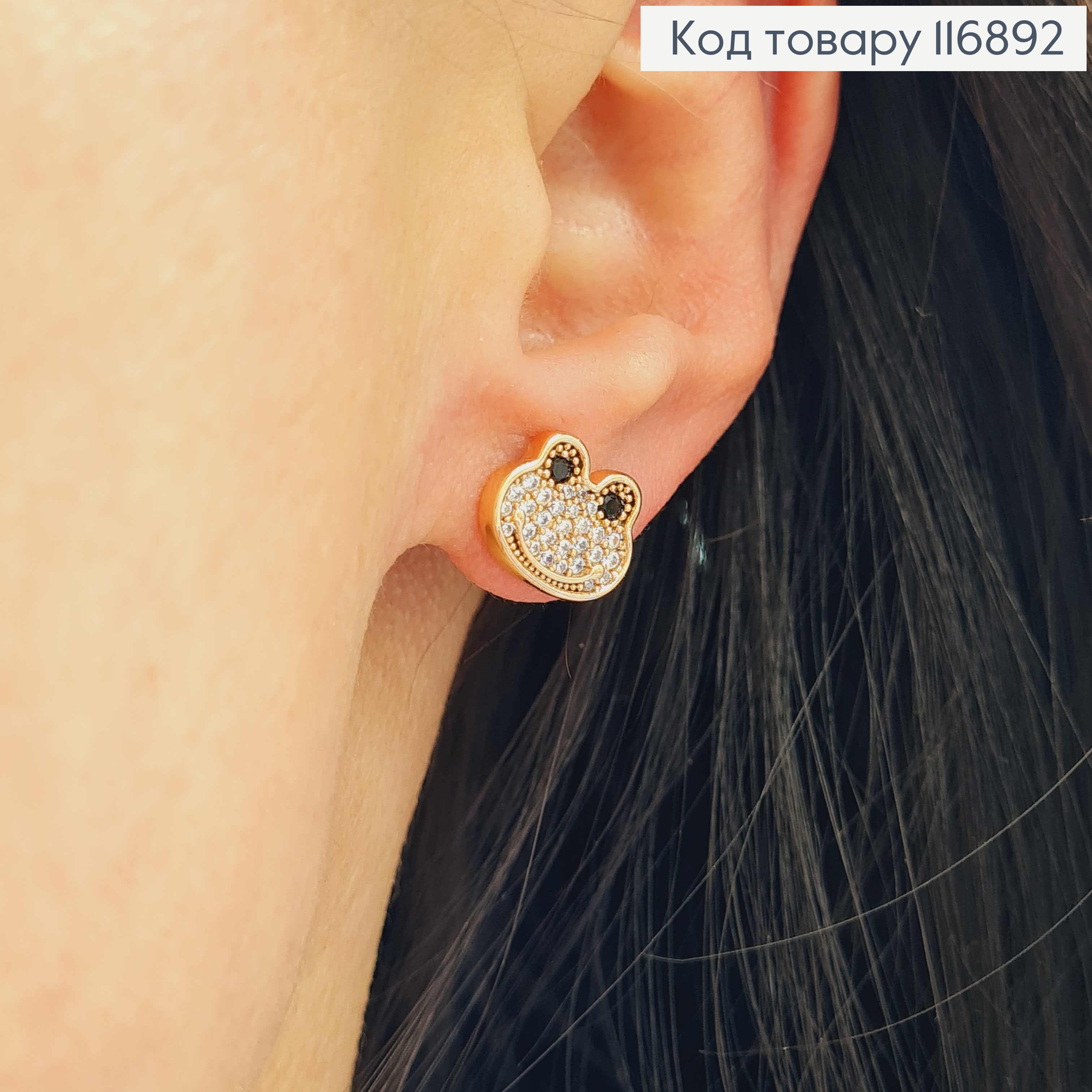Серьги гвоздики, "Лягушка", мордочка лягушки в камешках, 1см, Xuping 18K