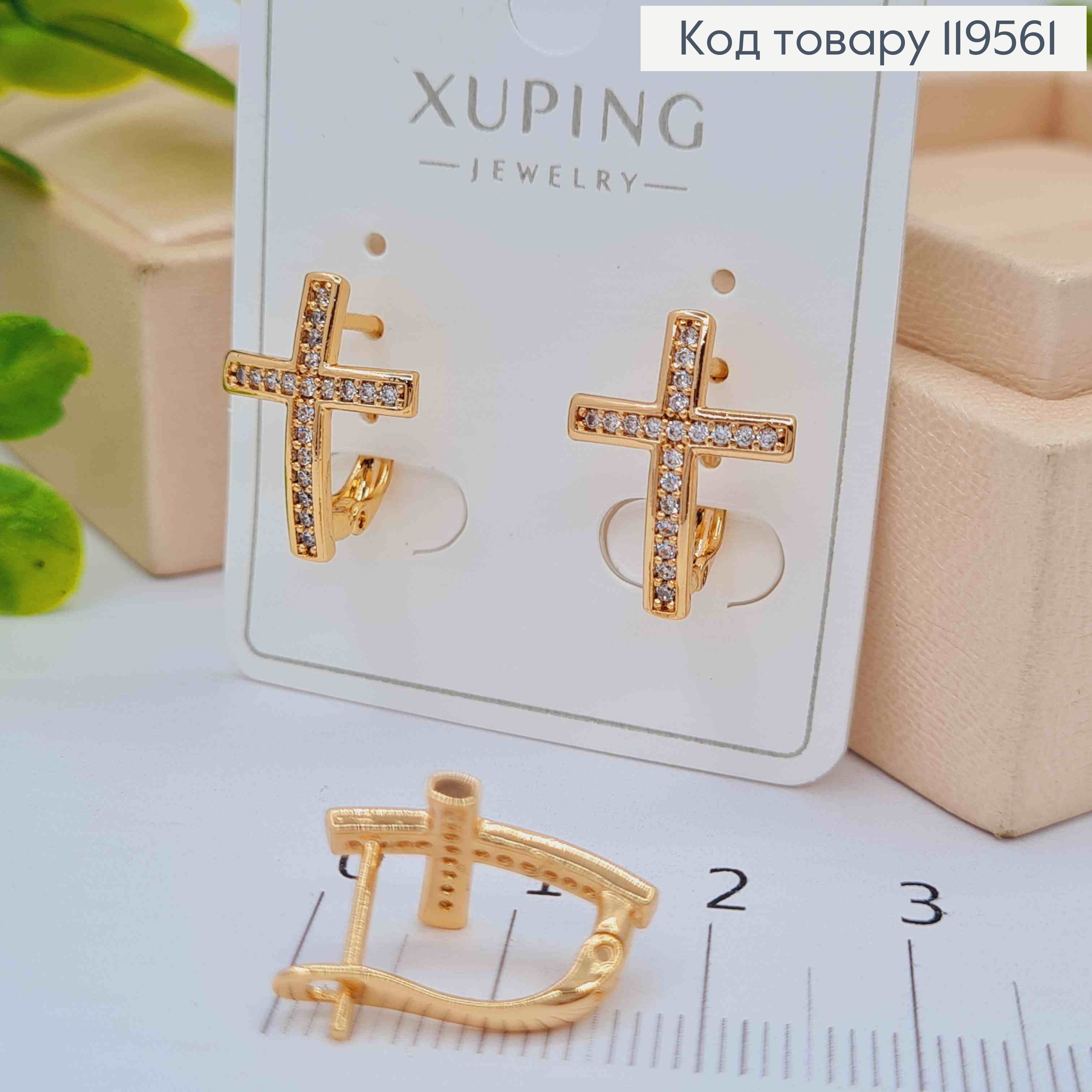 Серьги "Крестики" с Блестящими камешками, дл.1,6см, английская застежка, Xuping 18K