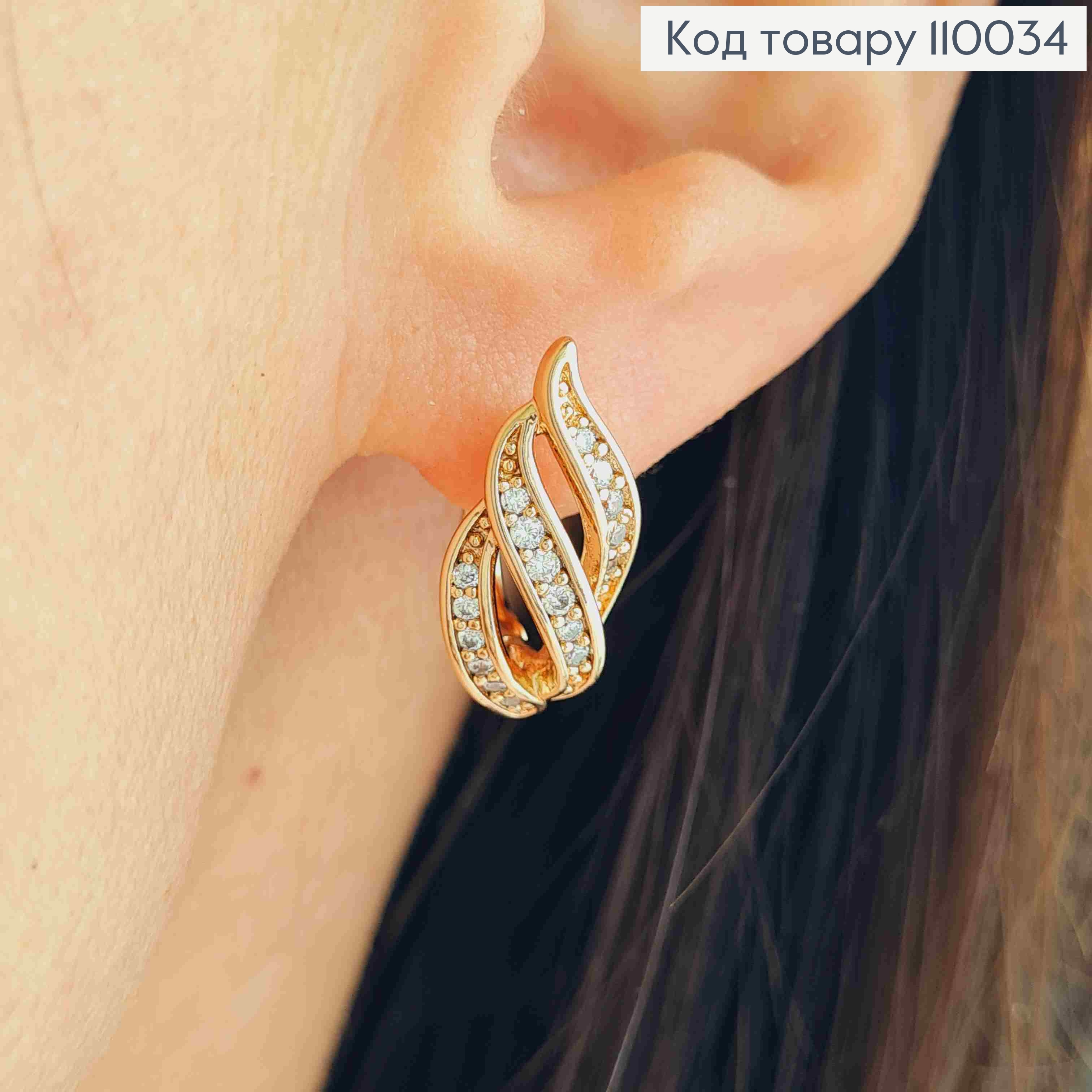 Серьги "Волны" украшены Блестящими камешками, длина 1,8см, английская застежка, Xuping 18K