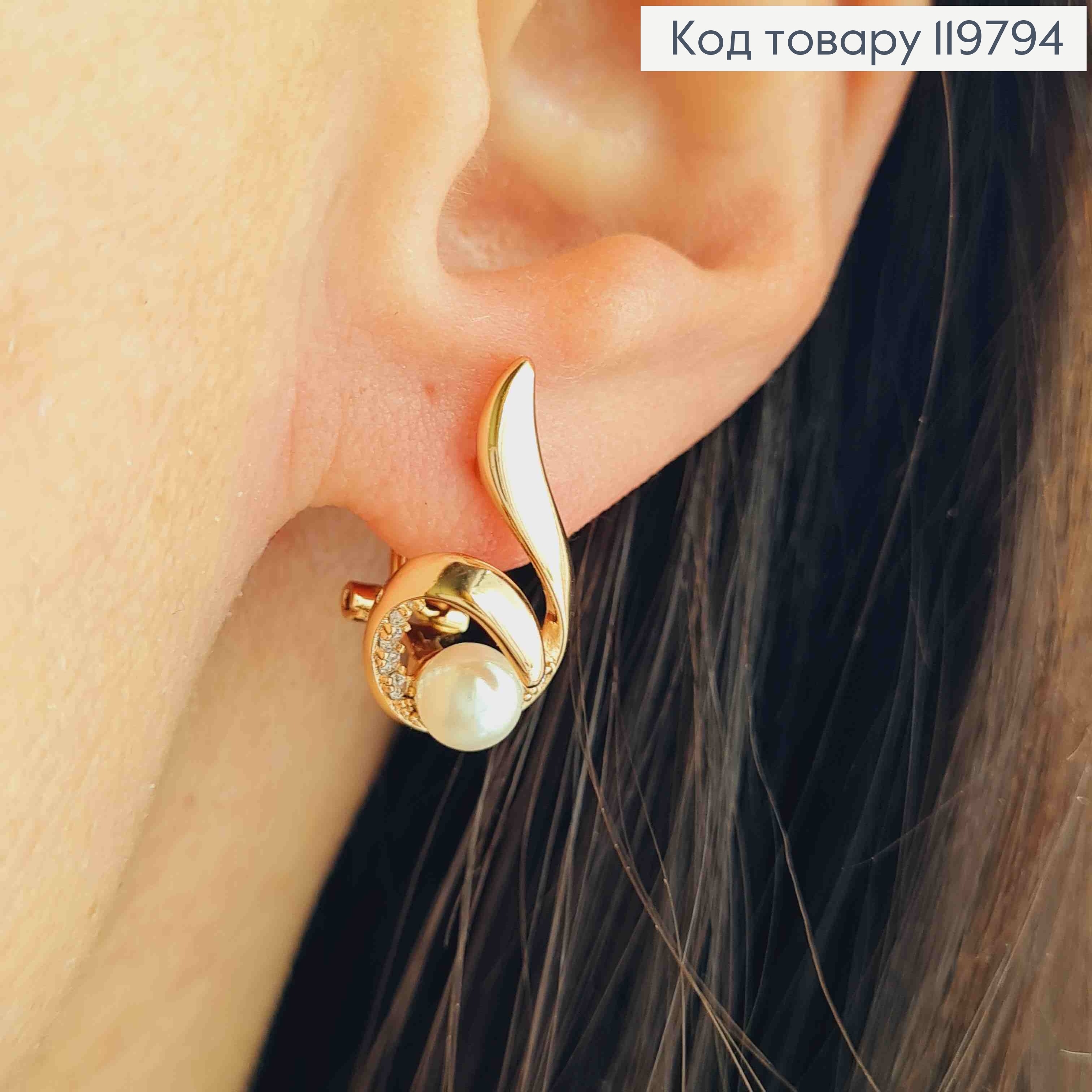 Серьги "Искра" с Блестящими камешками и жемчужиной, размер 1,9см, итальянская застежка, Xuping 18K