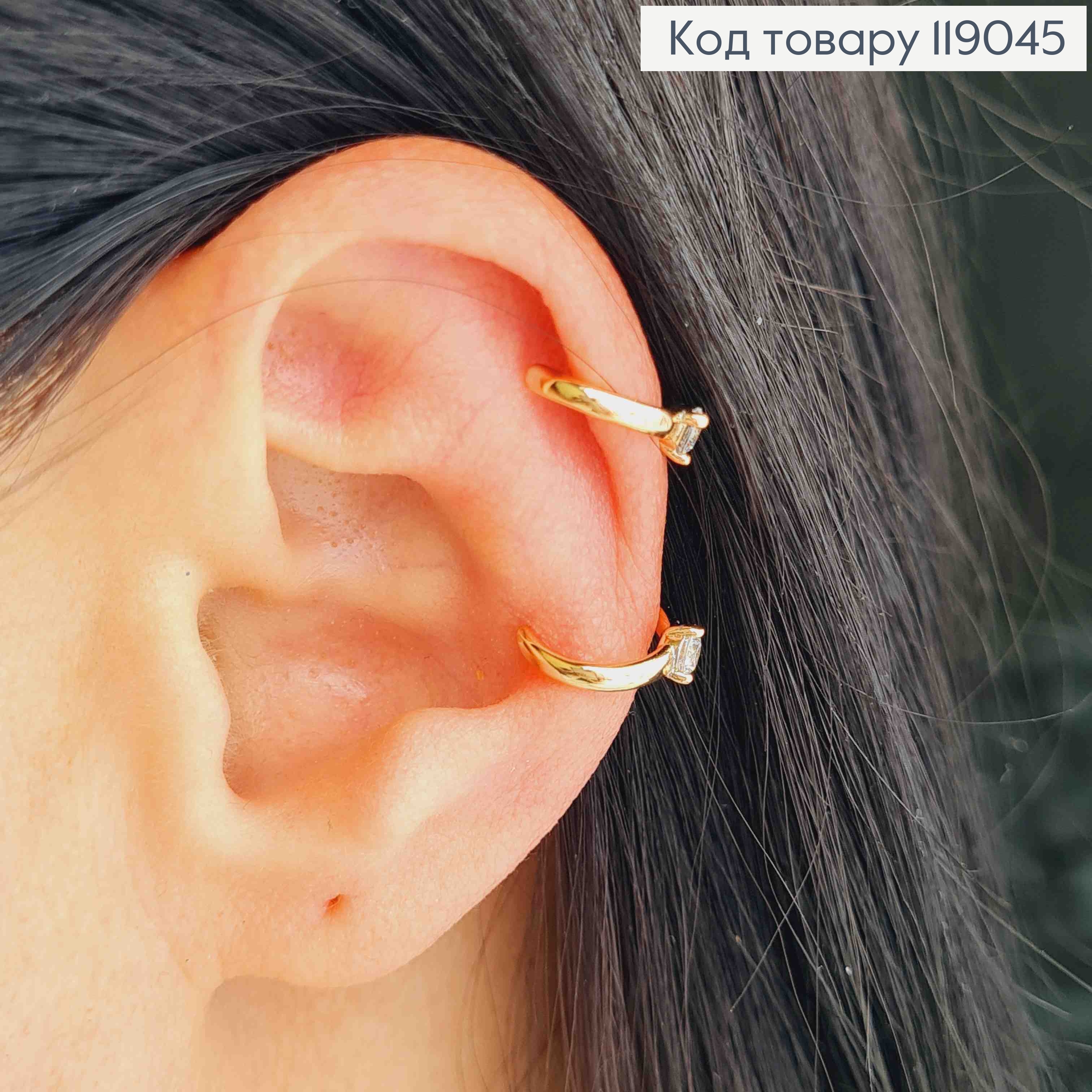 Серьги кафы на уши хрящик с Блестящим камнем, Xuping 18K