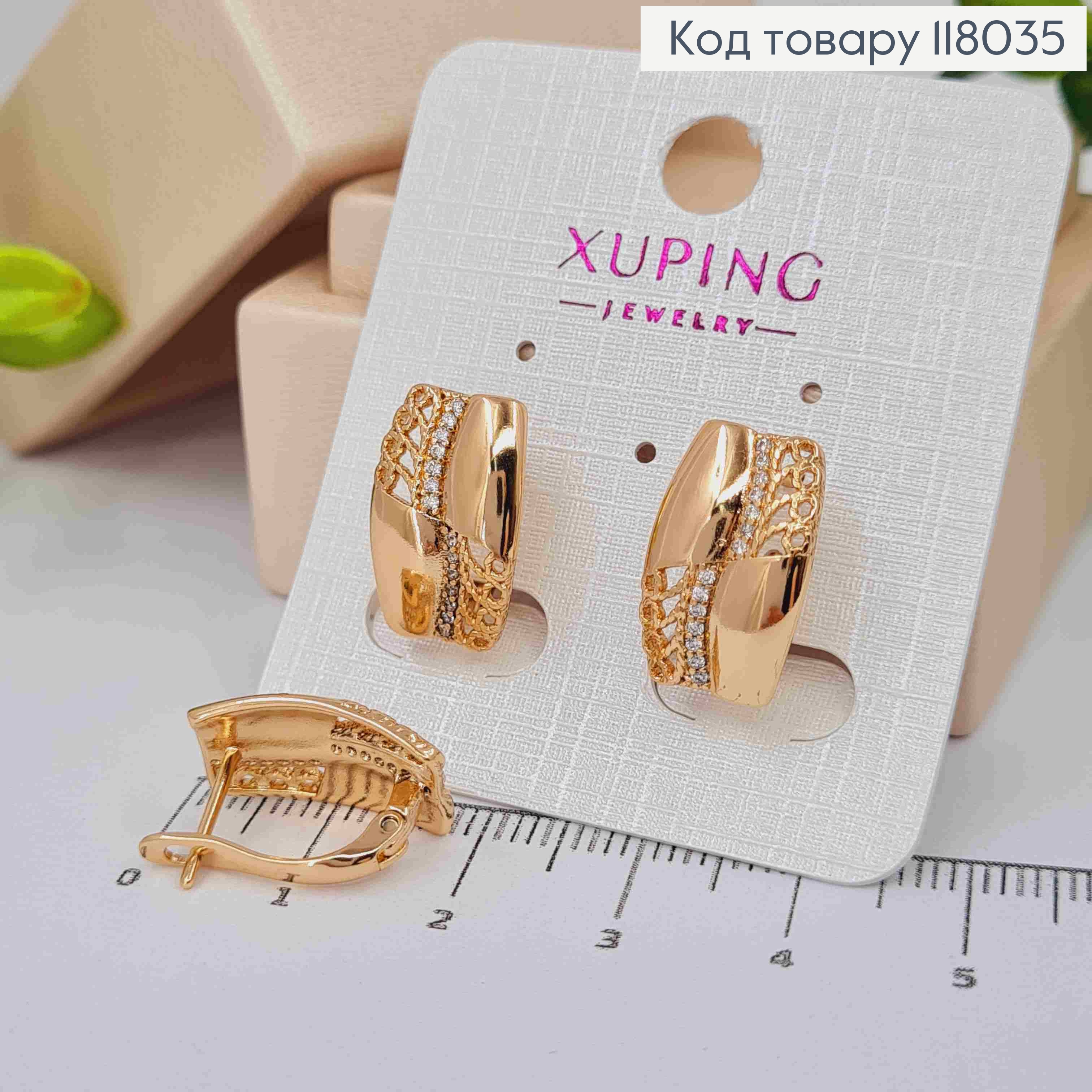Серьги прямоугольные Фактурные, длина 1,7см, английская застежка, Xuping 18К 110203 фото