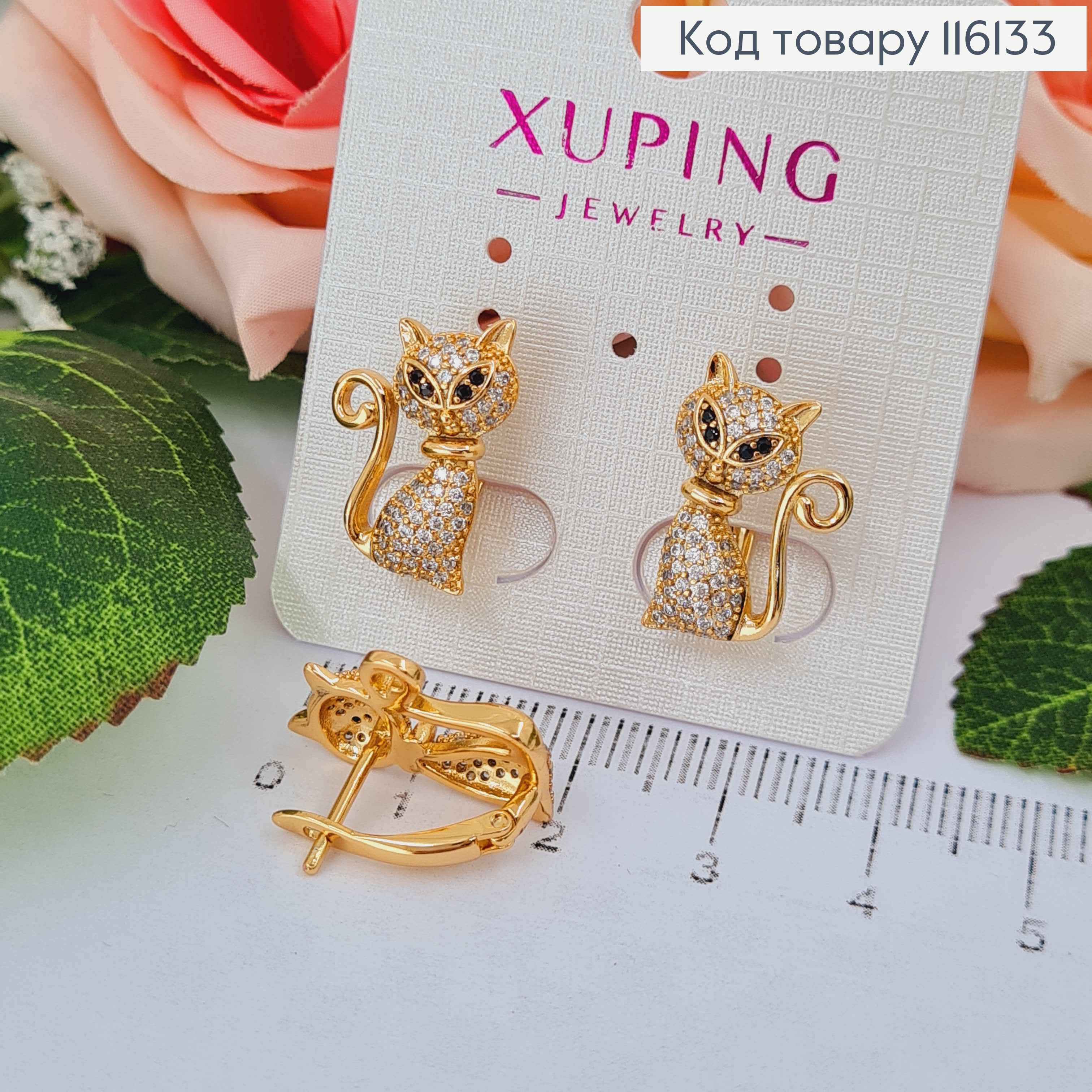 Серьги, "Киса" в камнях, с черными камешками, 1,5см, англ. застежка, Xuping 18К