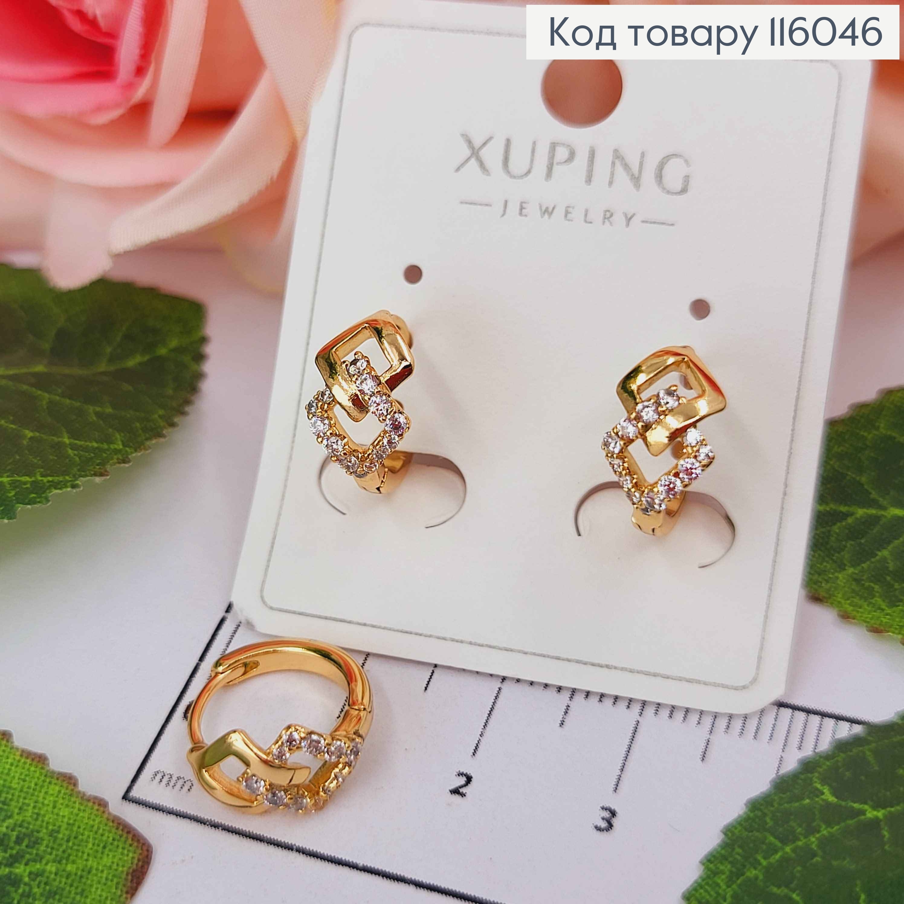 Серьги кольца 1,1см, два сплетенных ромбика, с камешками, Xuping 18K