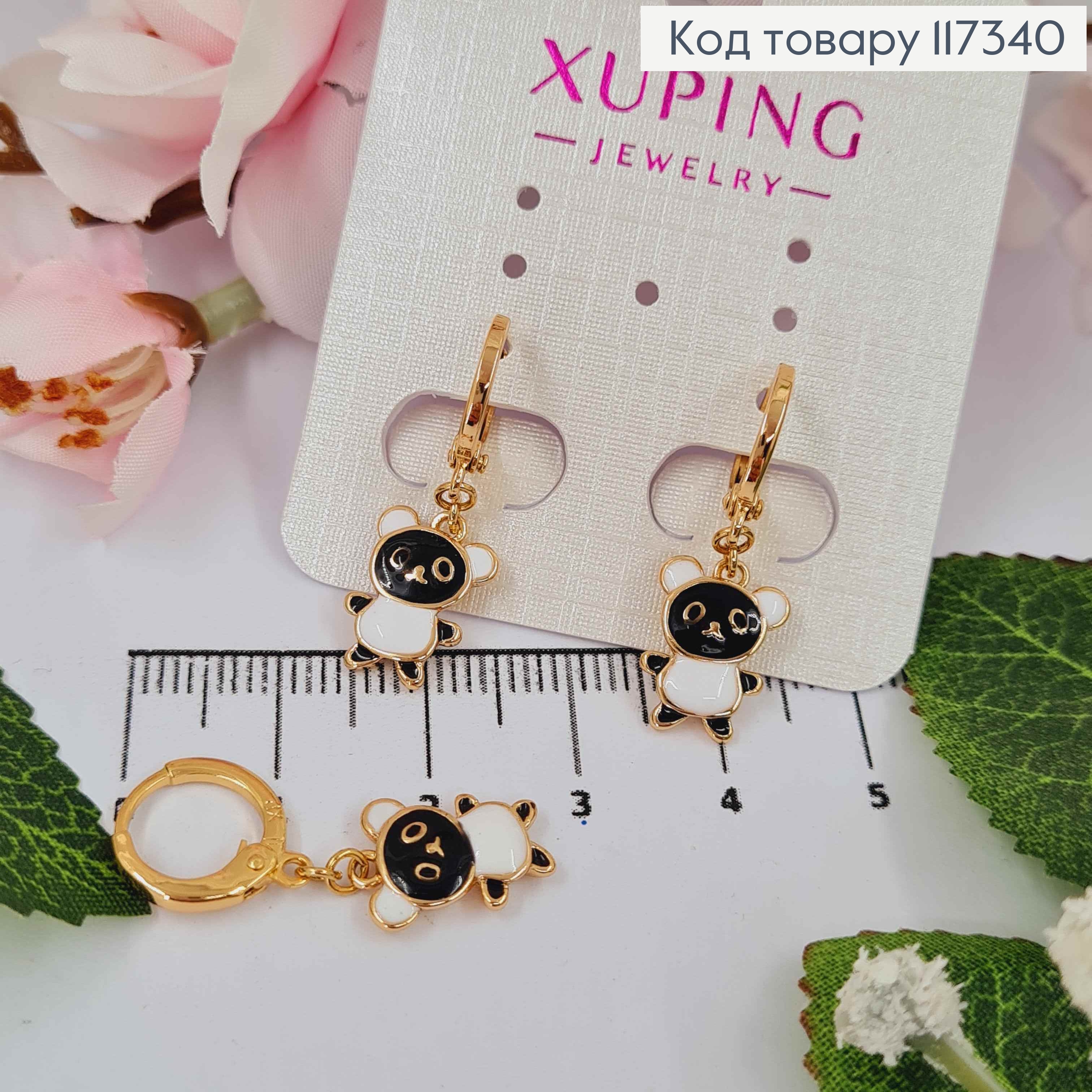Серьги Кольца 1,1см, с подвеской Медвежонок 1,2см, Xuping 18K