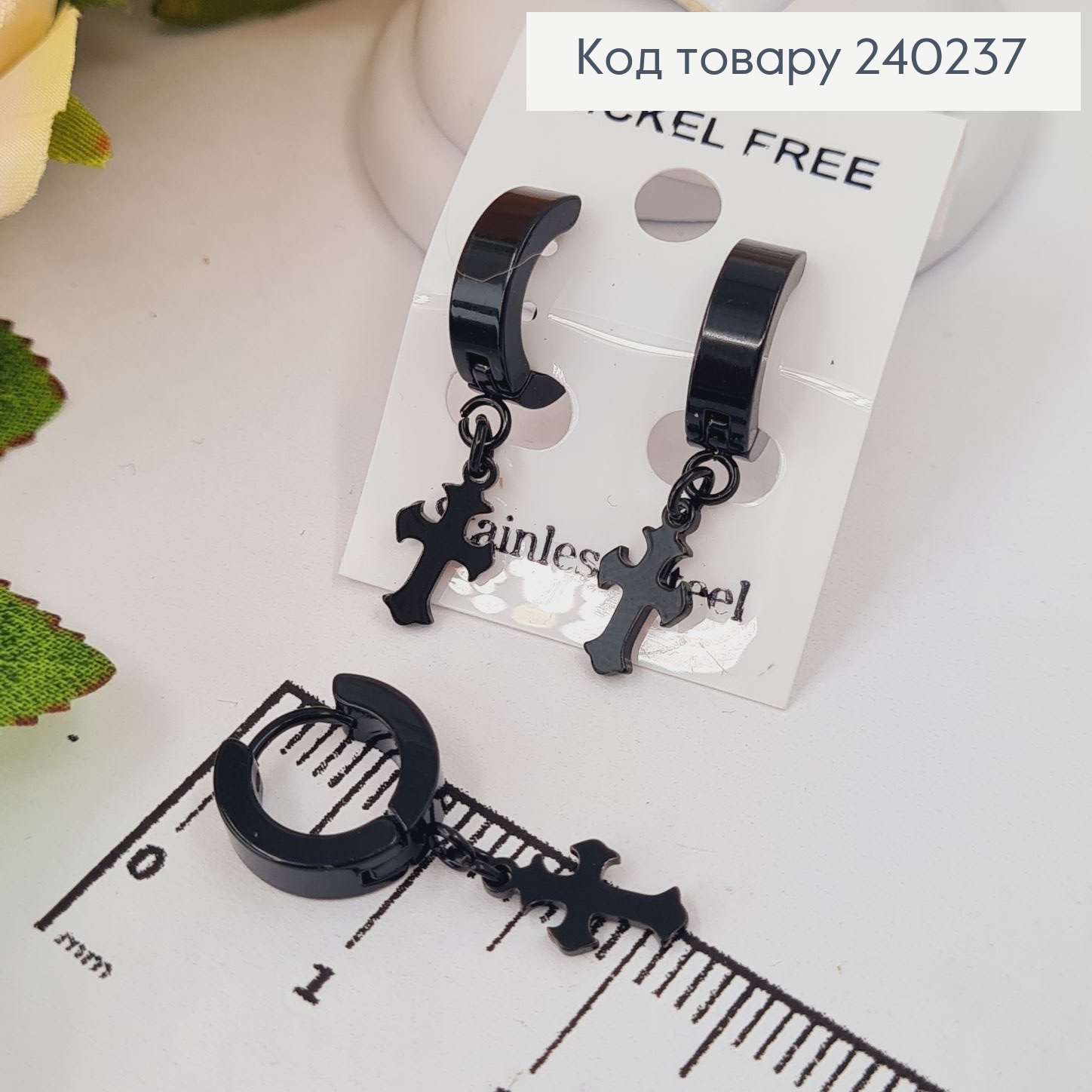 Серьги кольца 1,2см Крестики черного цвета 1,1*0,6см, Stainless Steel