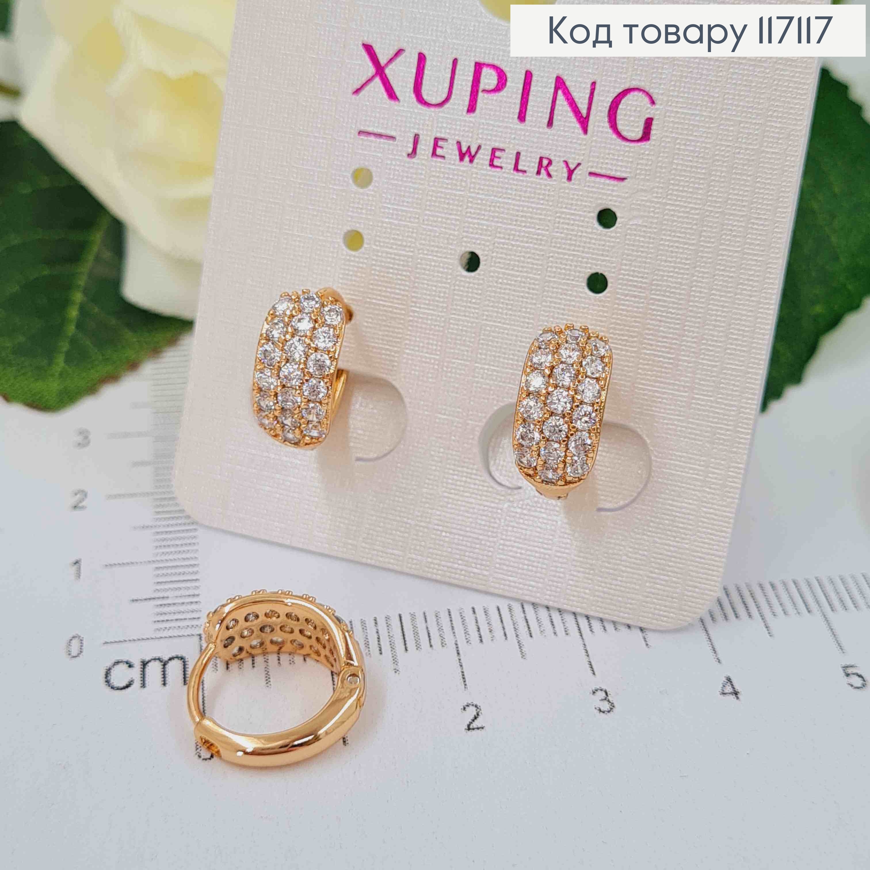 Серьги кольца 1,2см, пластинка в камешках, Xuping 18К