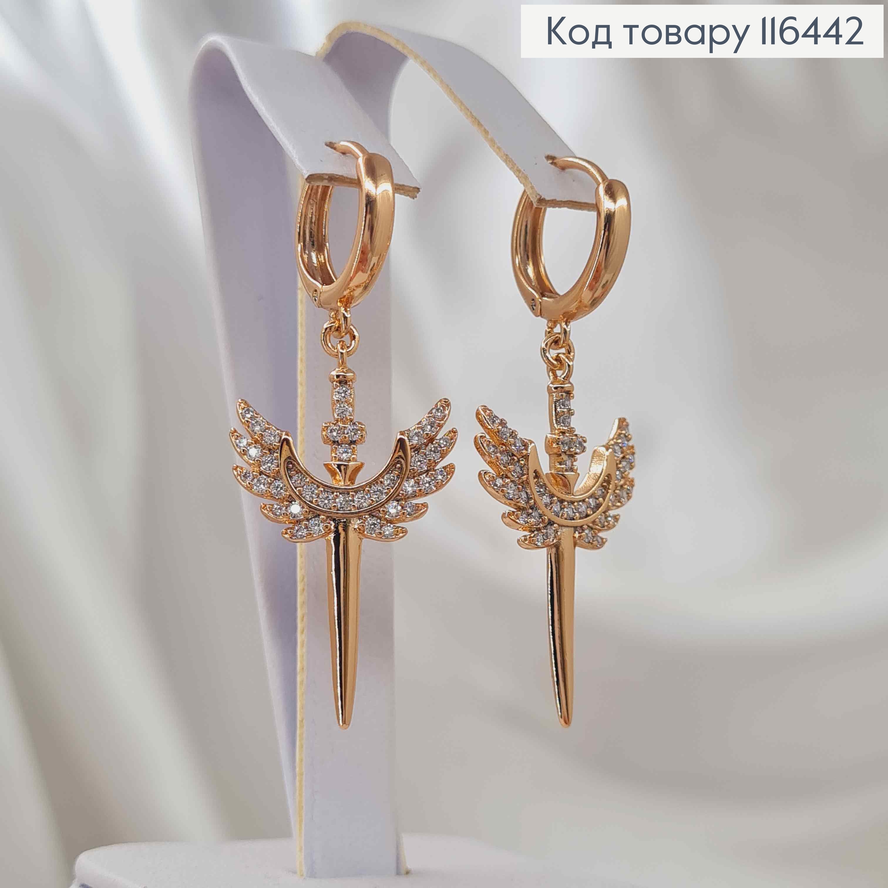 Серьги кольца 1,2см, с подвесками Мечем с крыльями, 3см, Xuping