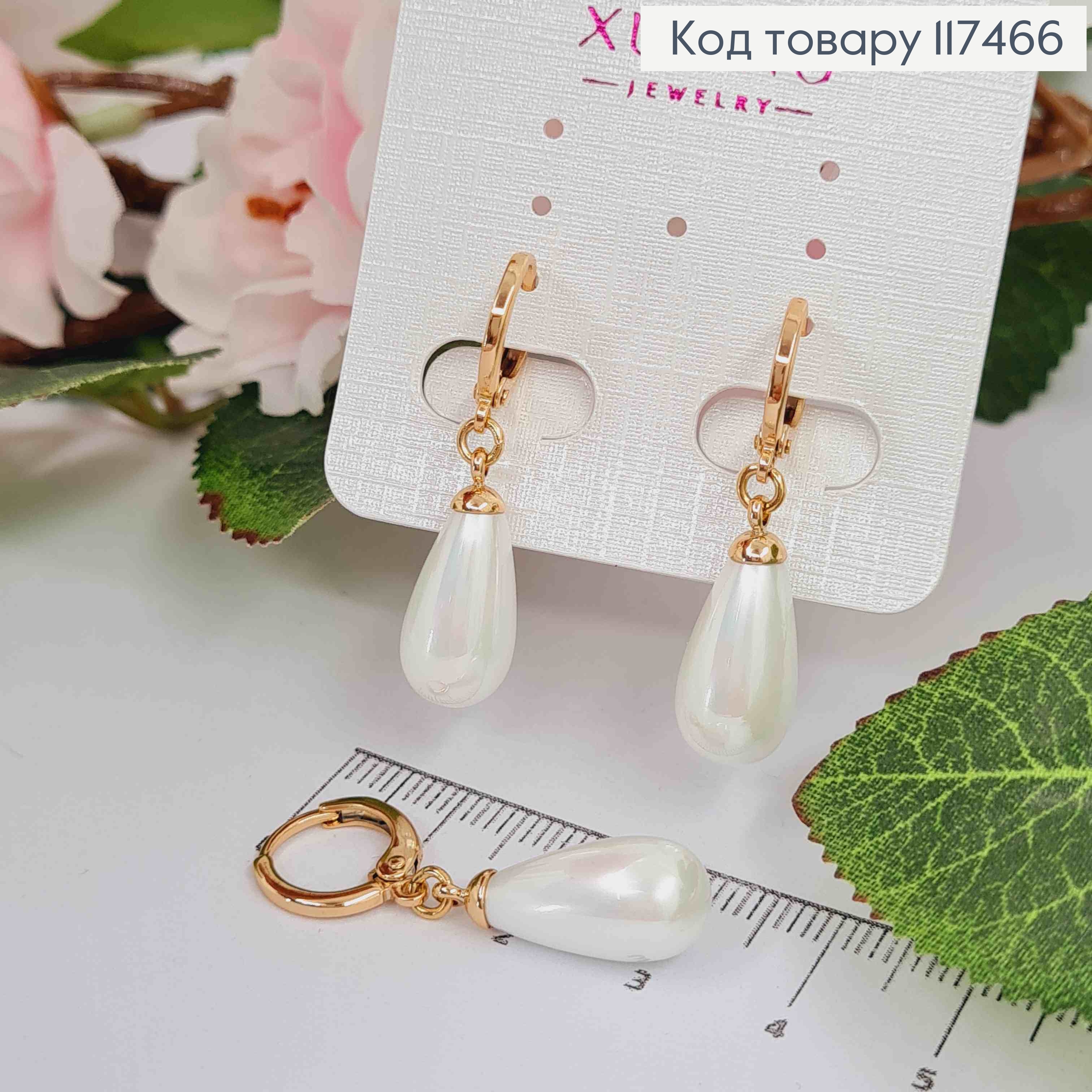 Серьги кольца (1,2см), с подвесной жемчужкой-капелькой (1,7см), Xuping 18к.