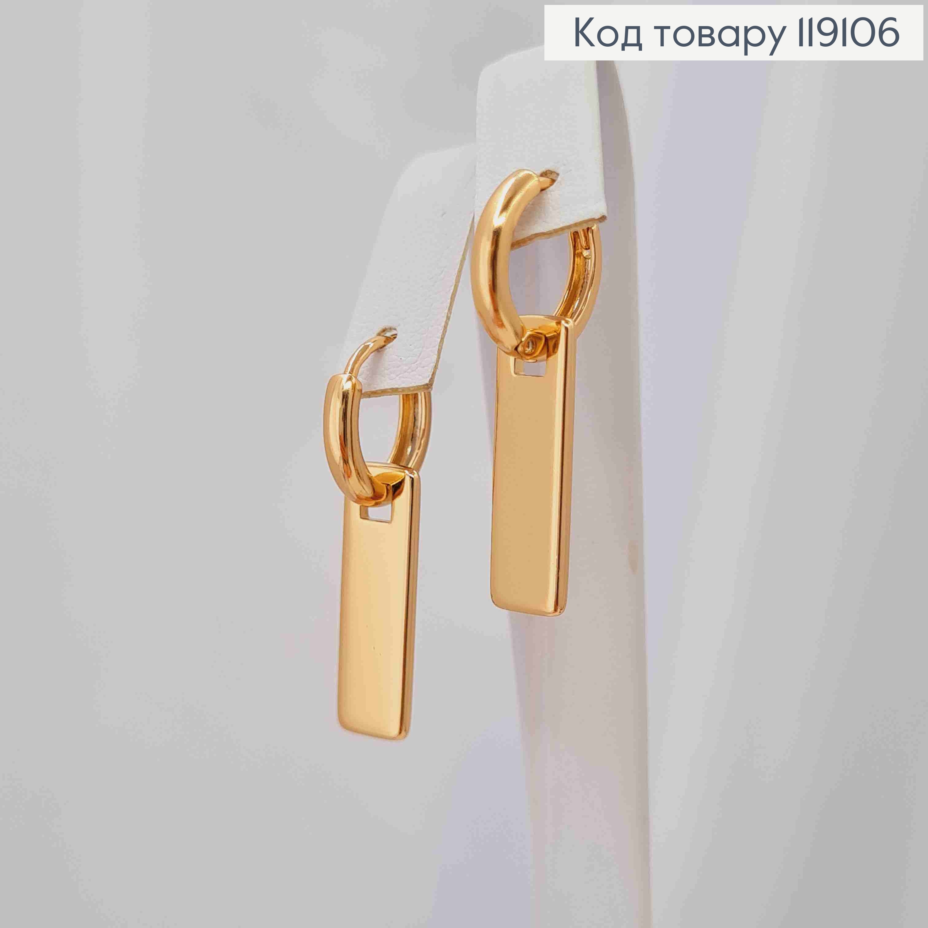Серьги прямоугольные Фактурные, длина 1,7см, английская застежка, Xuping 18К 110203 фото