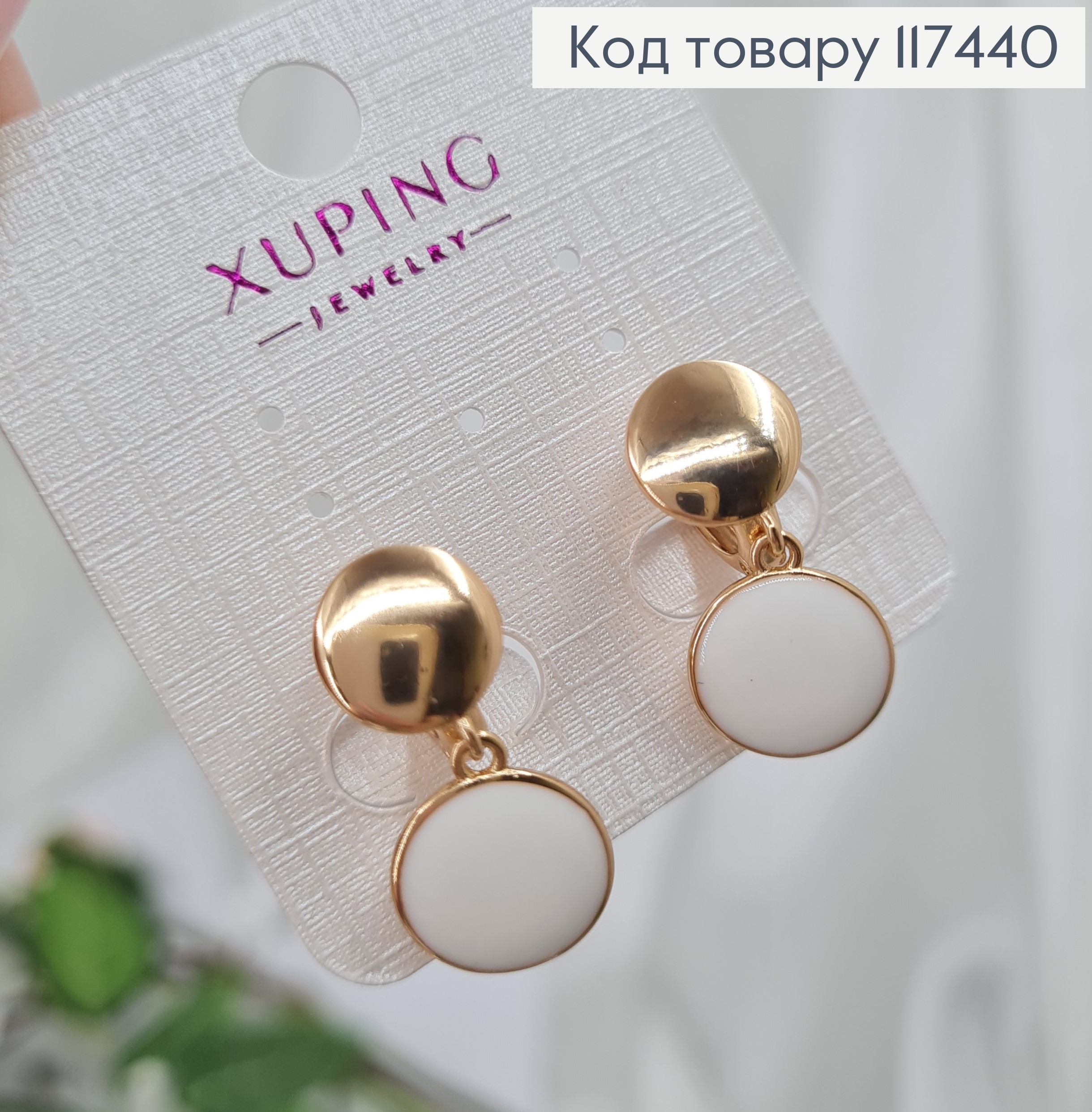 Серьги кольца 1,3см, Монетка с подвесной монеткой с эмалью Белого цвета, 9,5*11,5мм, XUPING 18K