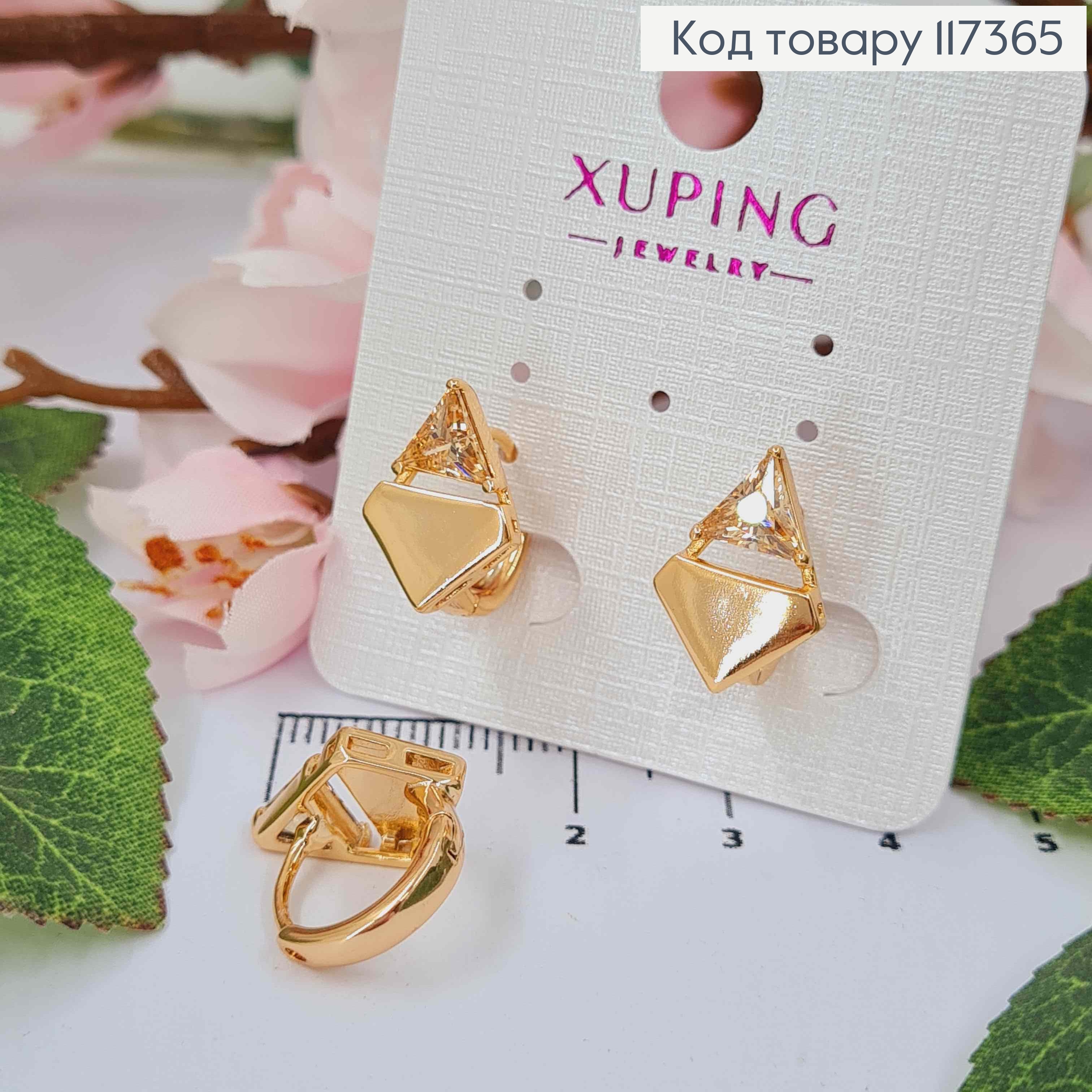 Серьги кольца 1,4см, Ромбик с Треугольным Желтым камешком, размер 1,5*1см, Xuping 18K
