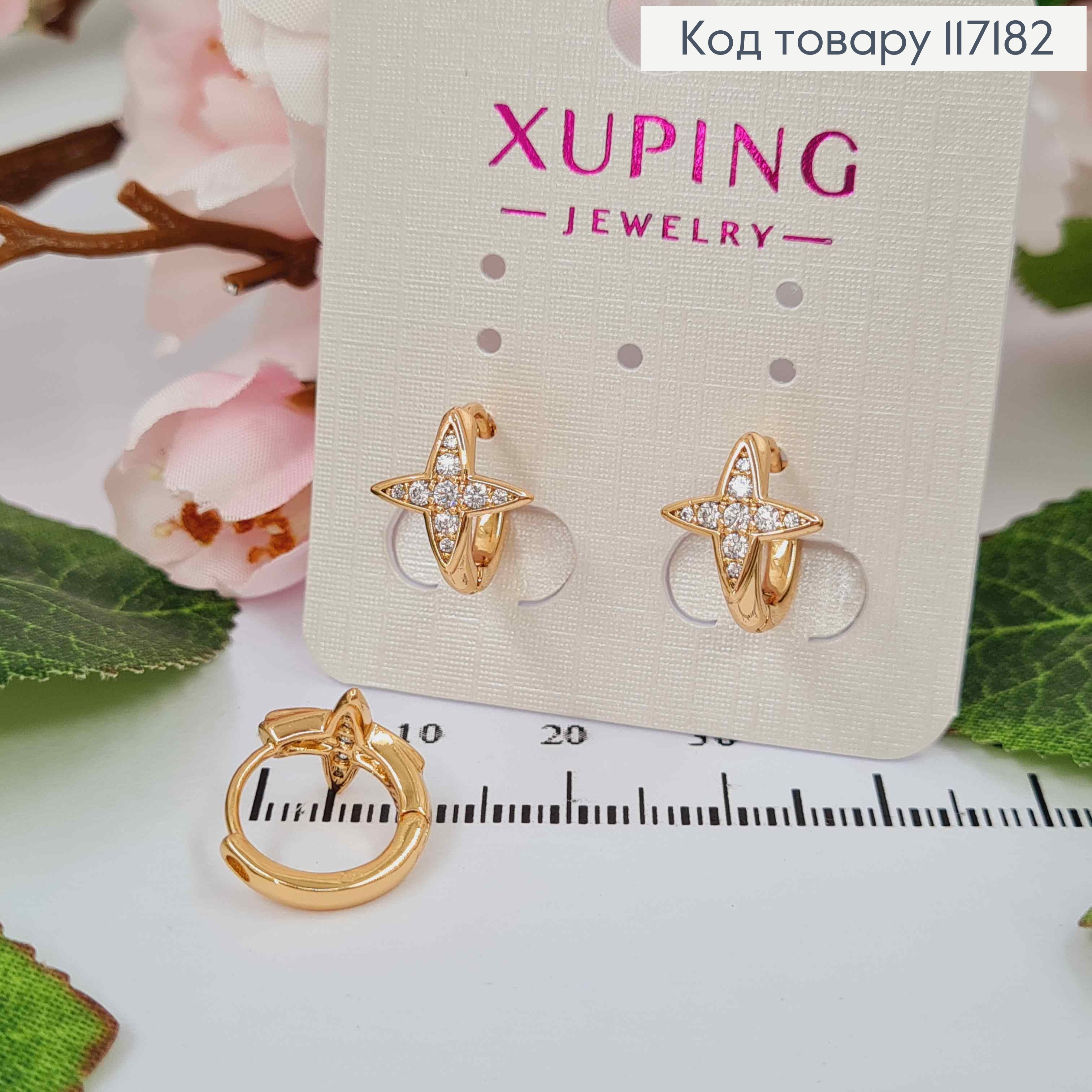 Серьги кольца 1,4см "Звездочка" в камешках, 1см, Xuping 18K