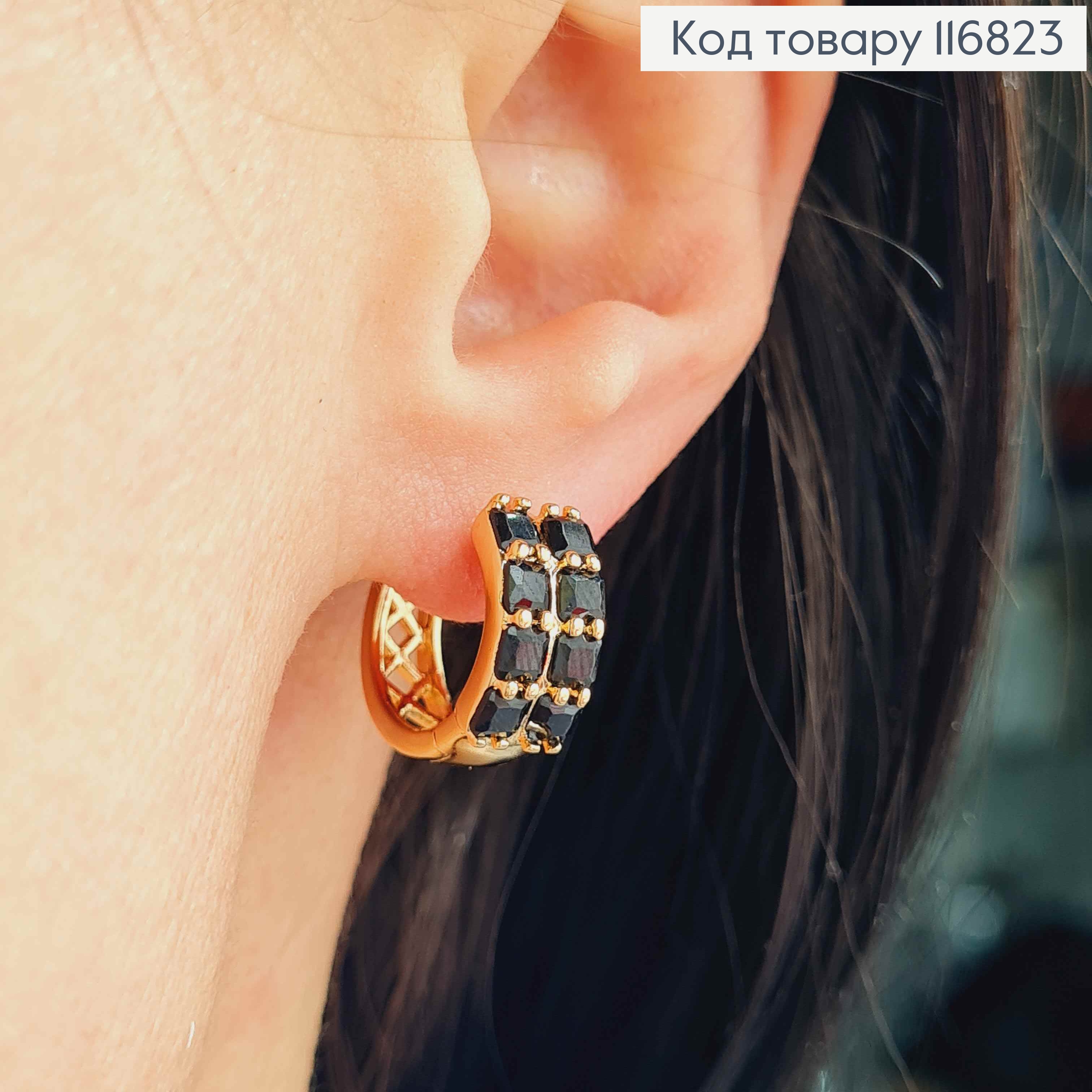 Серьги кольца 1,5см, четыре строчки Чёрных камешков, Xuping 18К