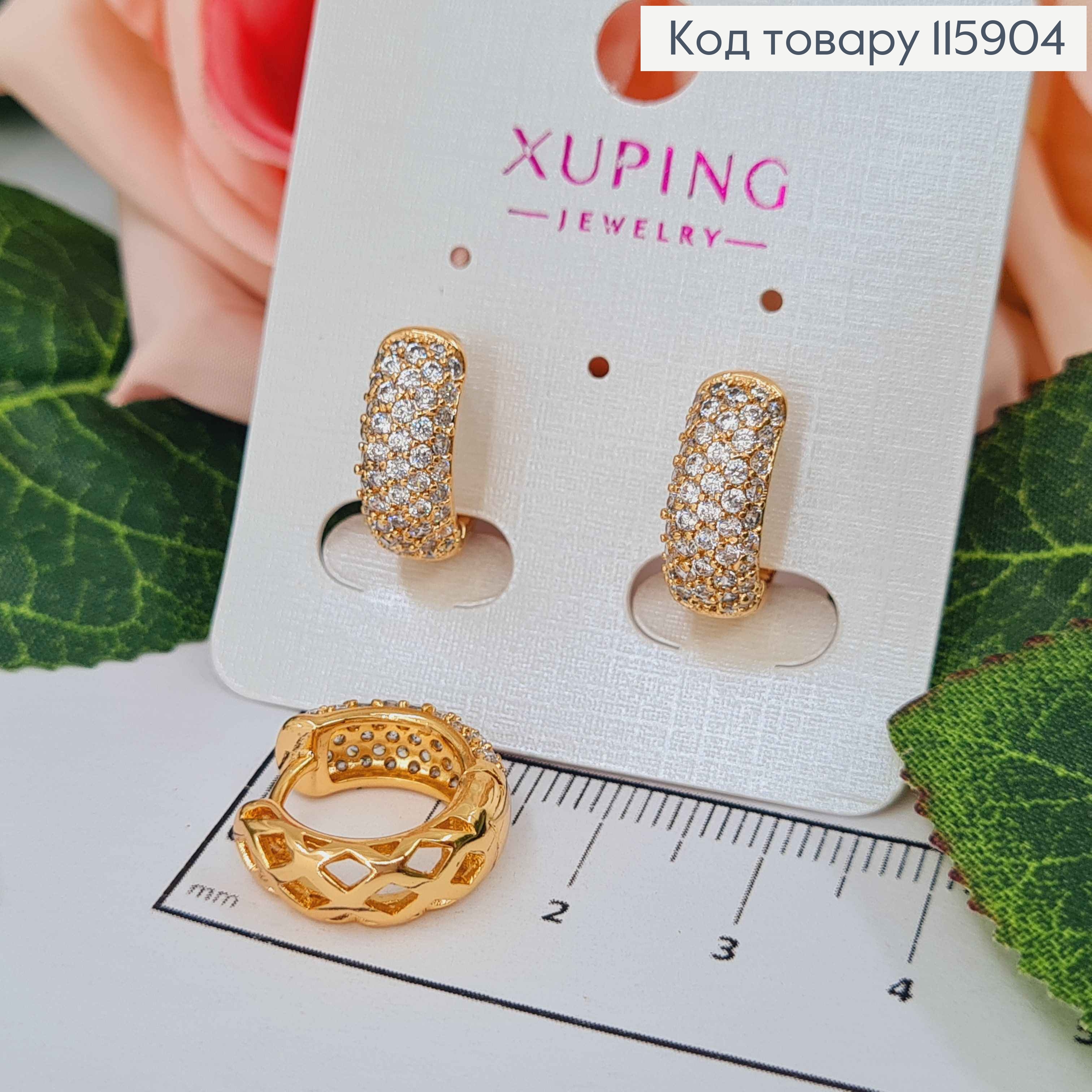 Серьги кольца 1,5см, в камешках, шир.5мм, Xuping 18K