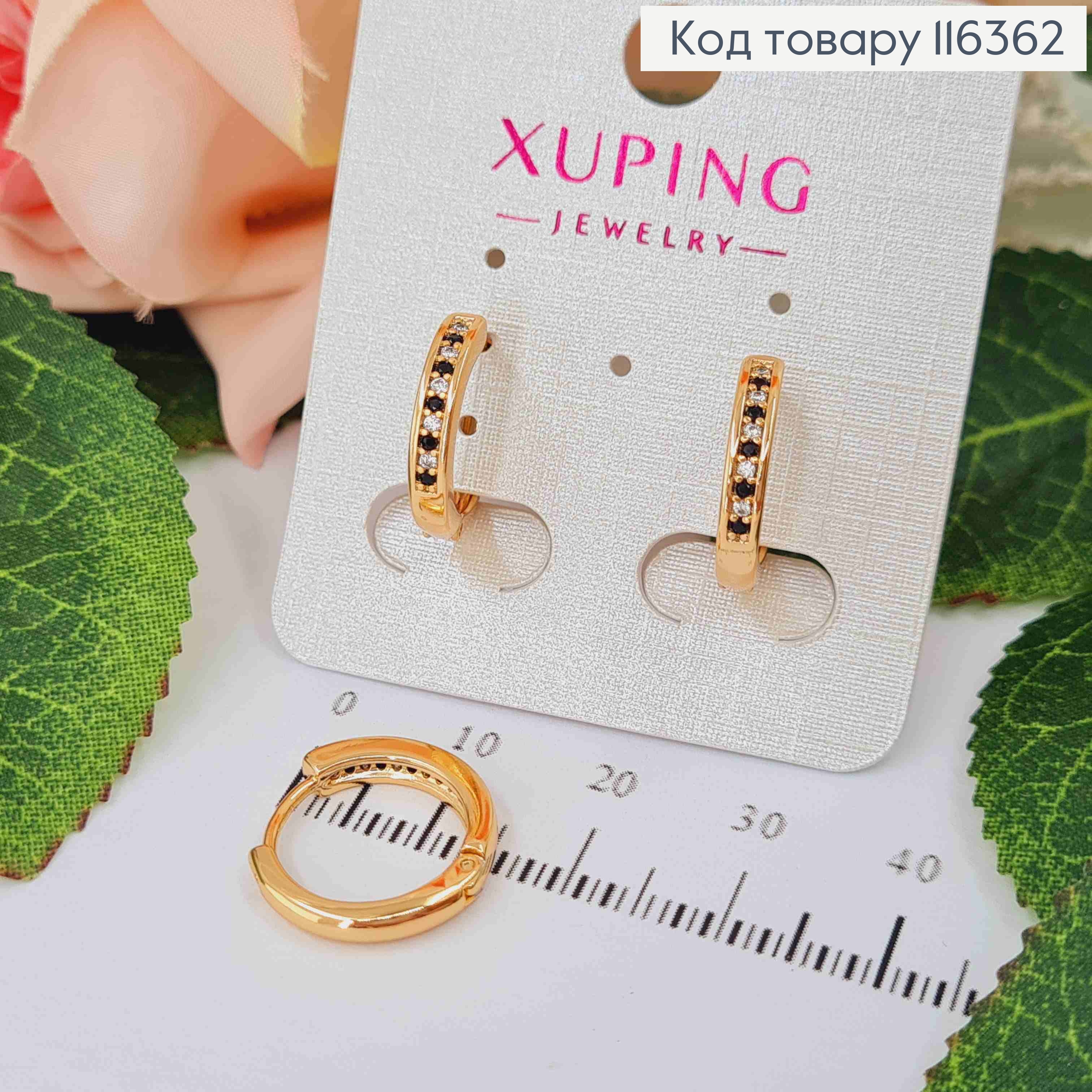Серьги кольца, 1,5см, с черно-белыми камешками Xuping 18K