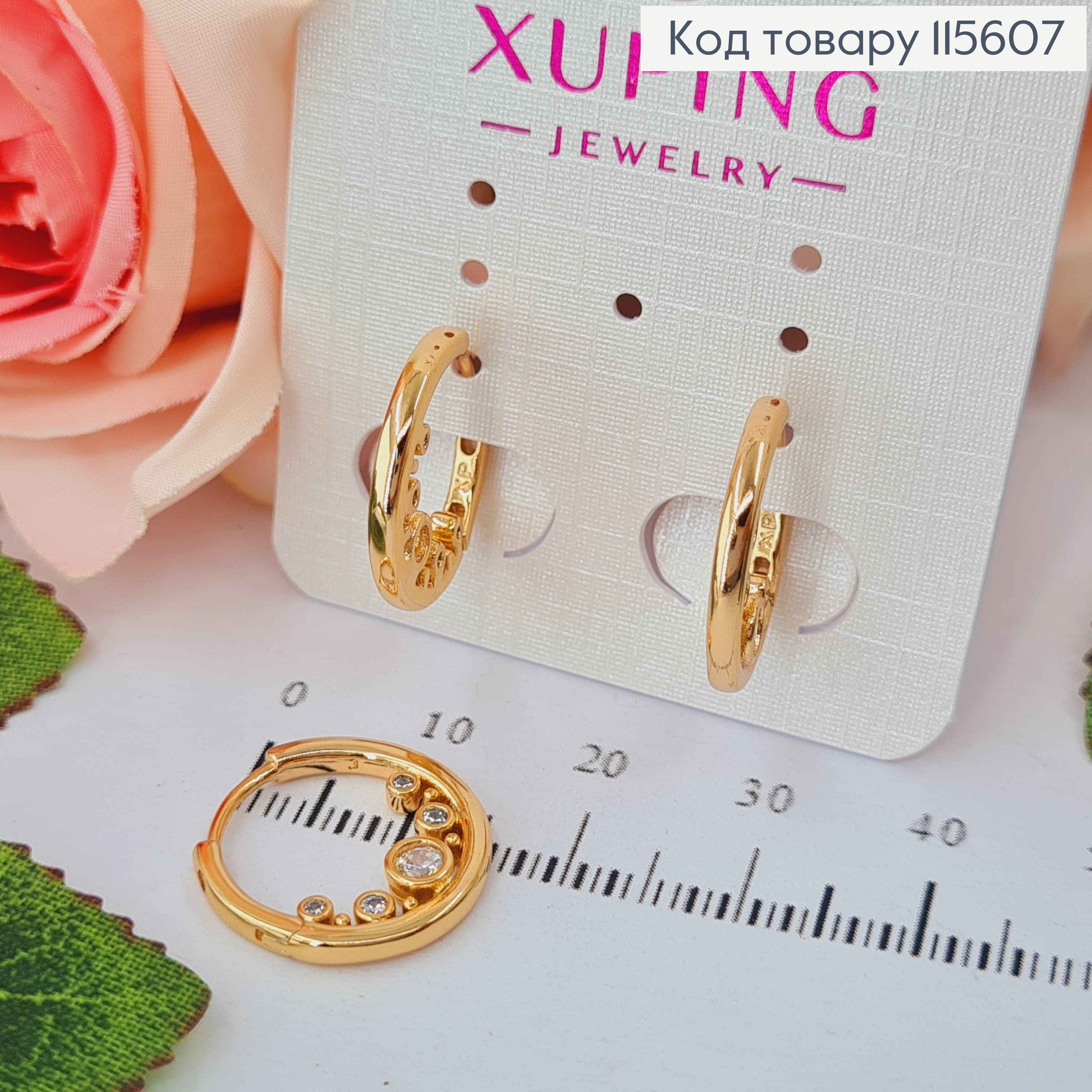 Серьги кольца 1,5см, с камешками на грани, Xuping 18K