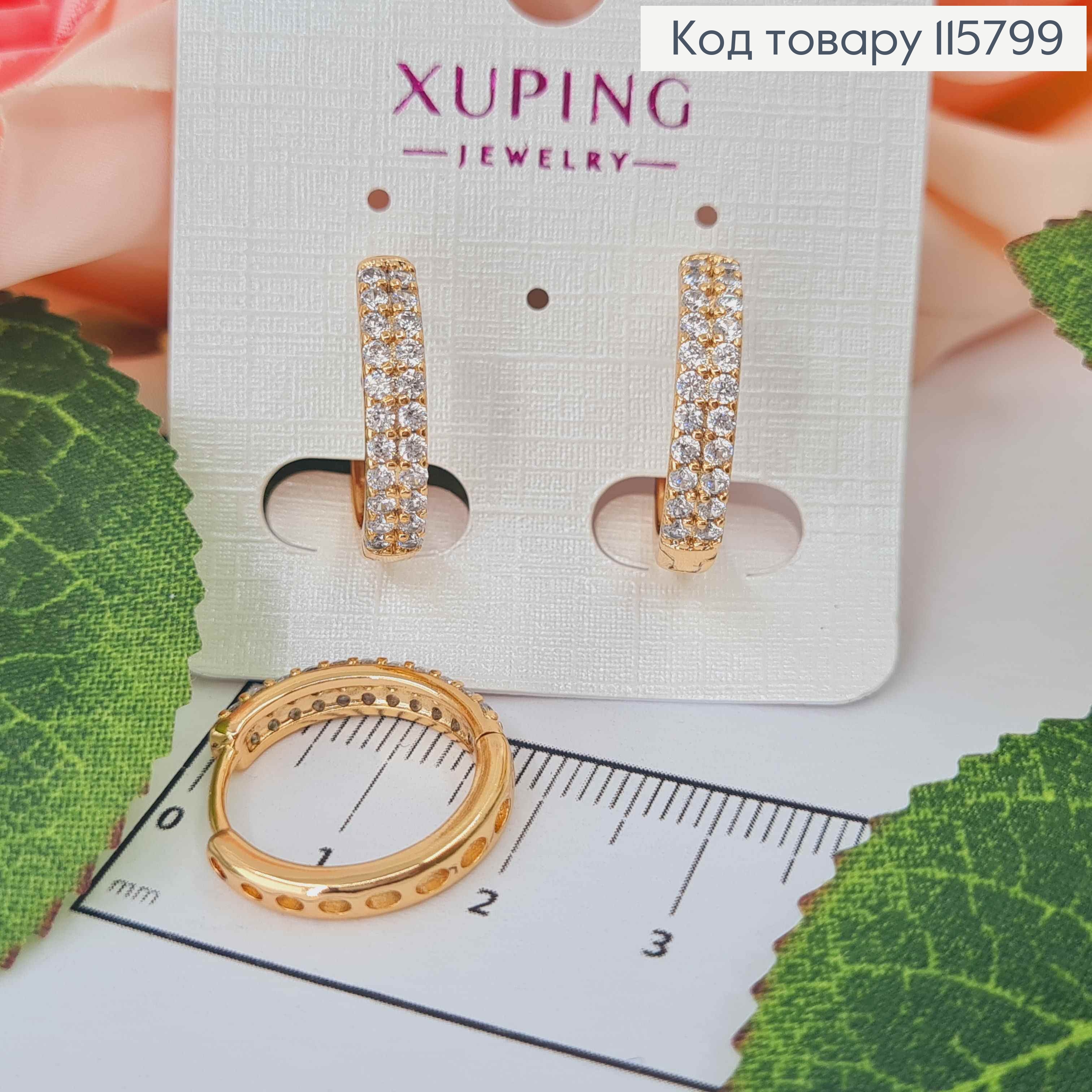 Серьги кольца 1,8см, С двумя строчками камешков, Xuping 18K