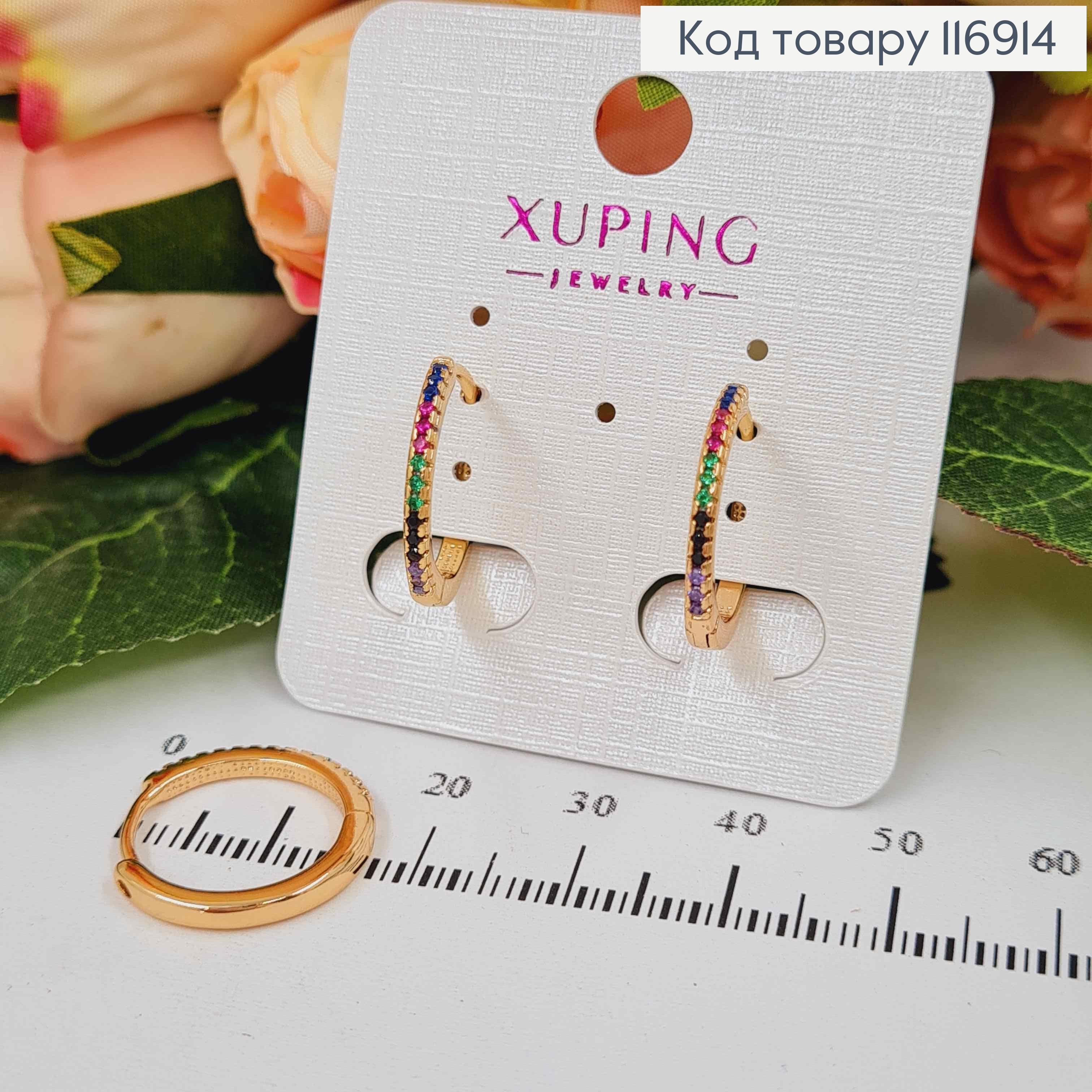 Серьги кольца 1,6см, с цветными камешками, Xuping 18K