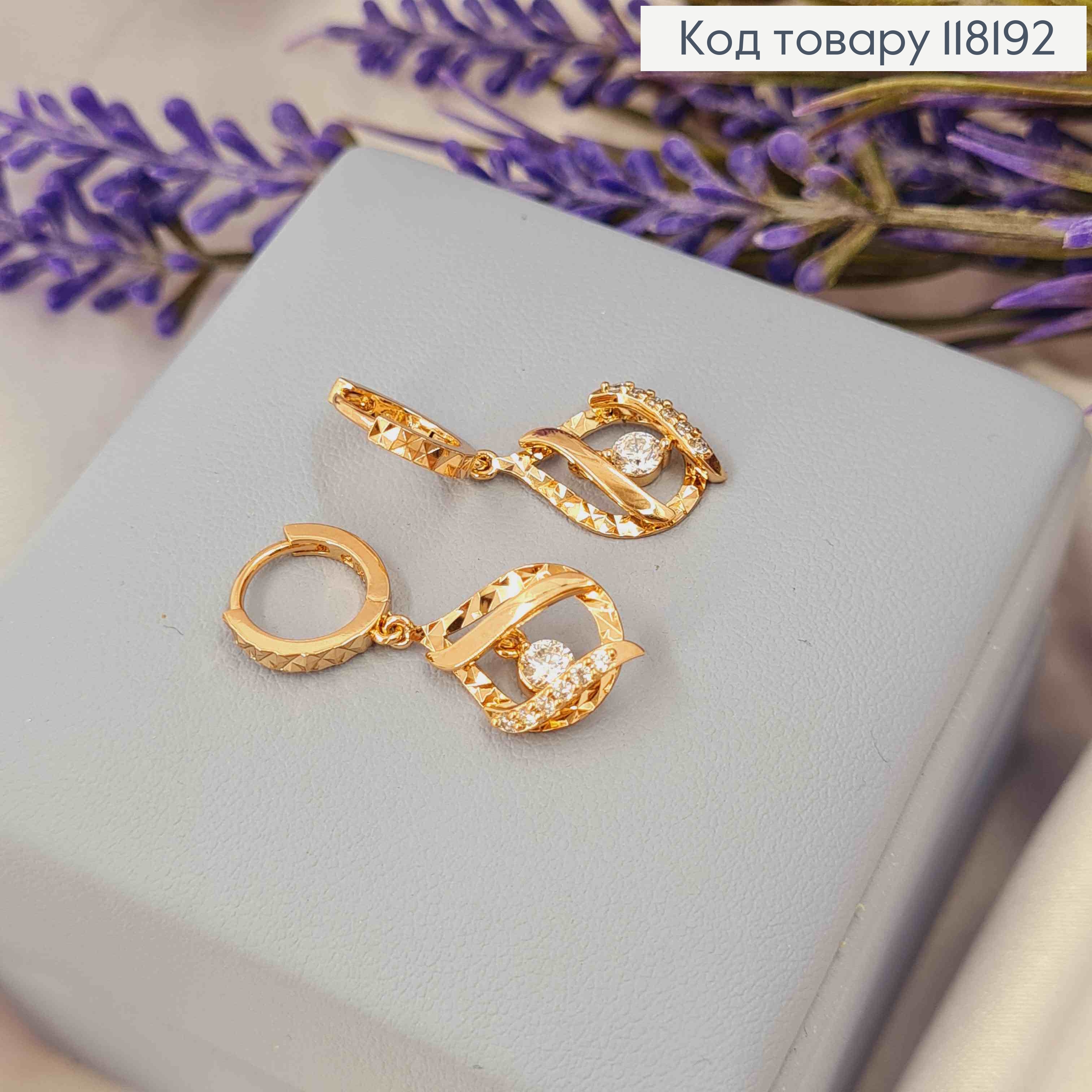Серьги "Бесконечность" с Блестящими камешками, длина 1,6см, английская застежка, Xuping 18К 110207 фото