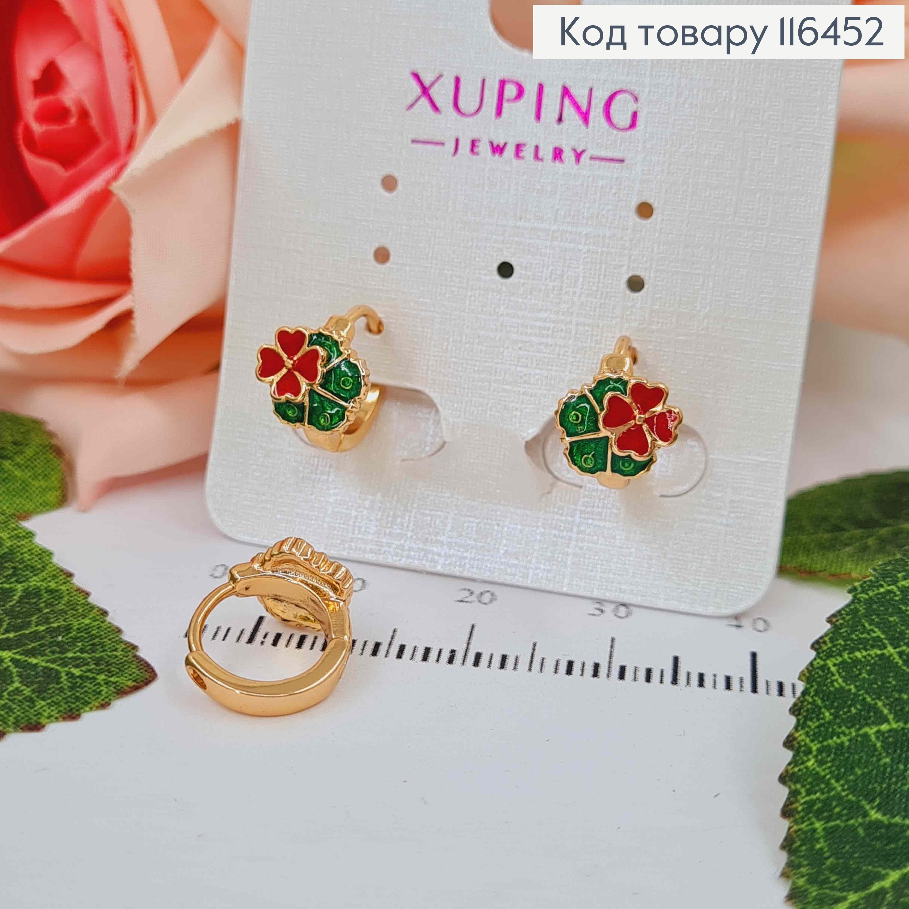 Серьги кольца 1см, Цветные четырехлистники, 8мм, Xuping 18К.