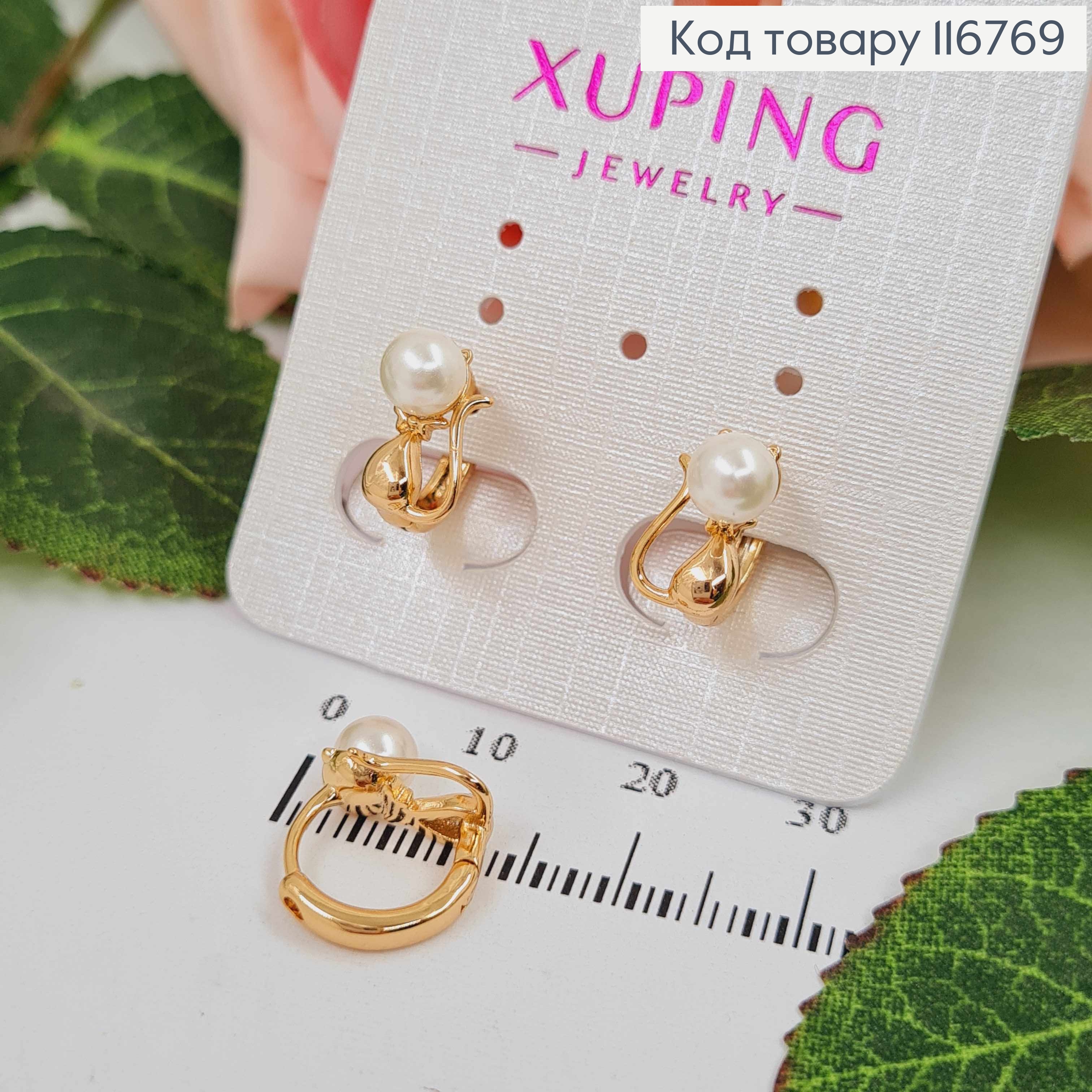 Серьги кольца 1см, Котенок с жемчужиной, 1см, Xuping 18K