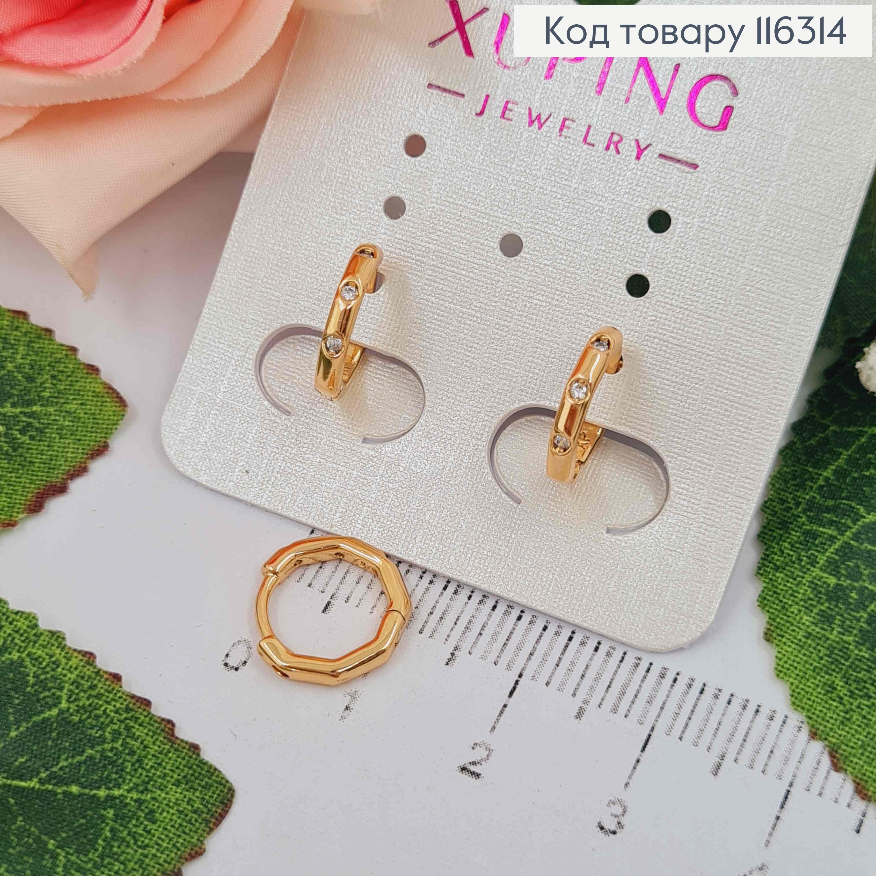 Серьги кольца 1см, "Лили" с тремя камешками, Xuping 18K