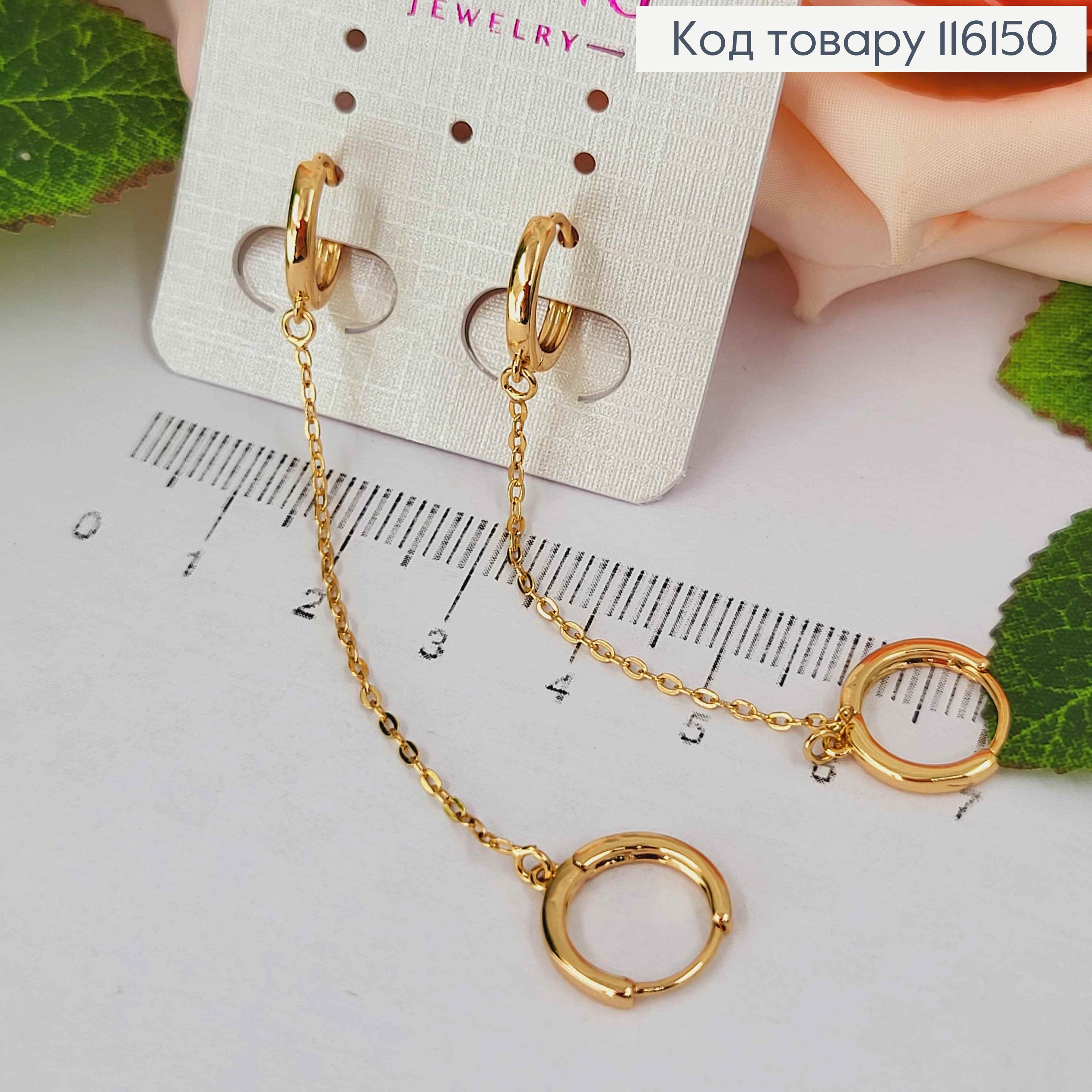 Серьги кольца с подвесными цепочками, размер 1,1+8см, Xuping 18K 110249 фото