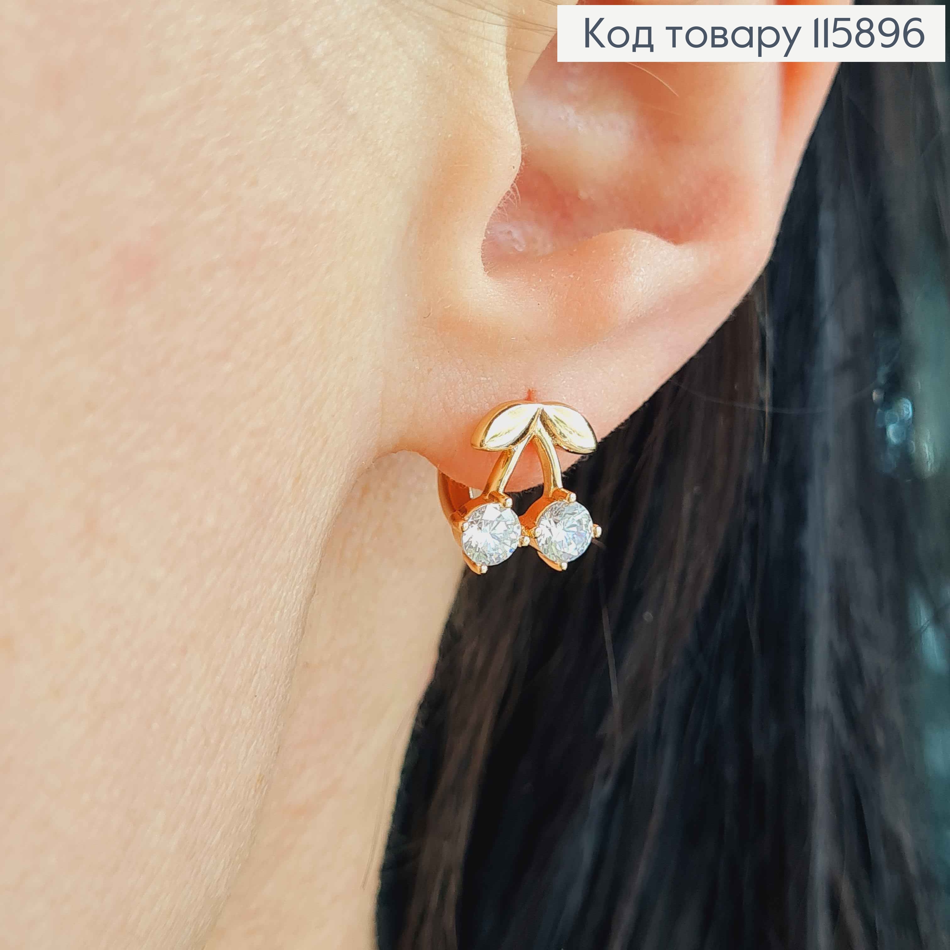 Серьги кольца 1см, вишенки с белым камнем, 1см. Xuping 18K