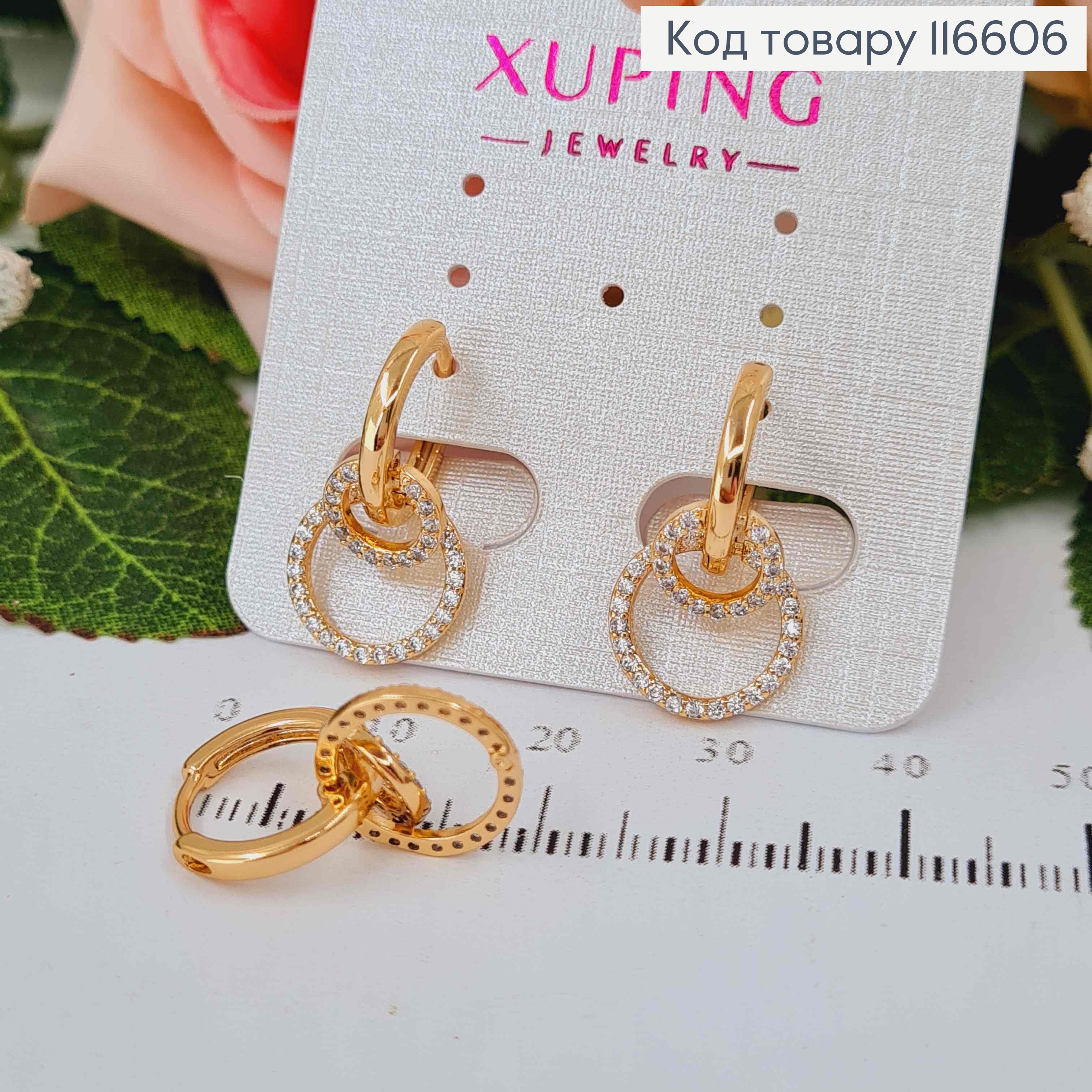Серьги кольца 1см, с двумя колечками в камешках, Xuping 18К