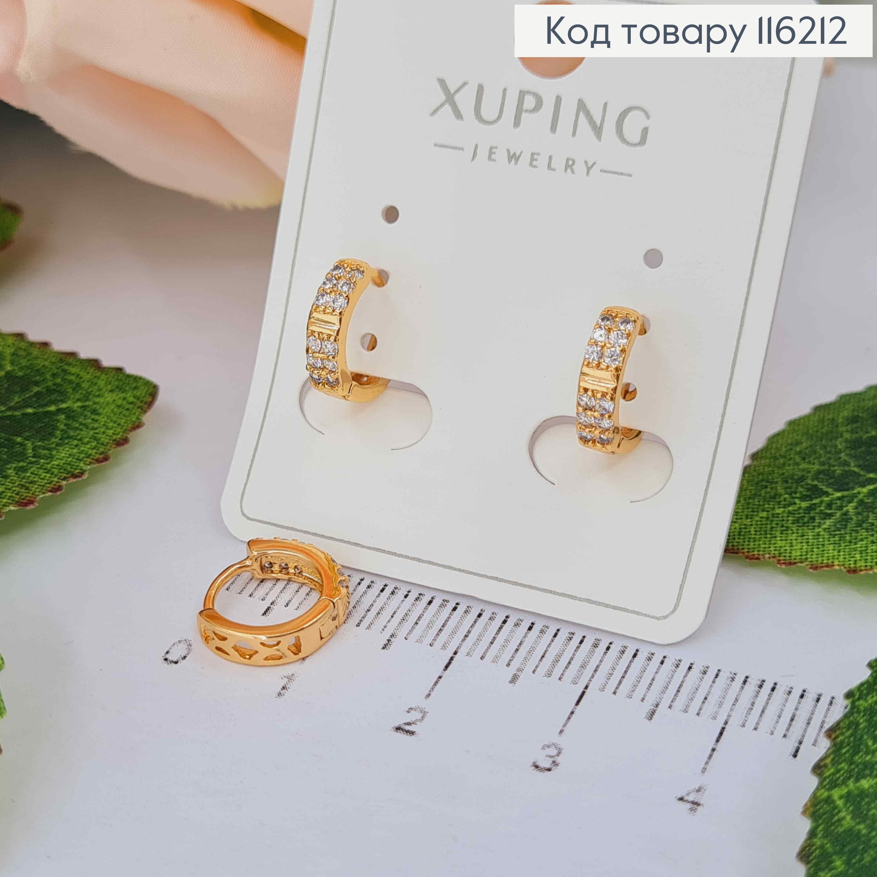 Серьги кольца 1см, с камешками, Xuping 18K